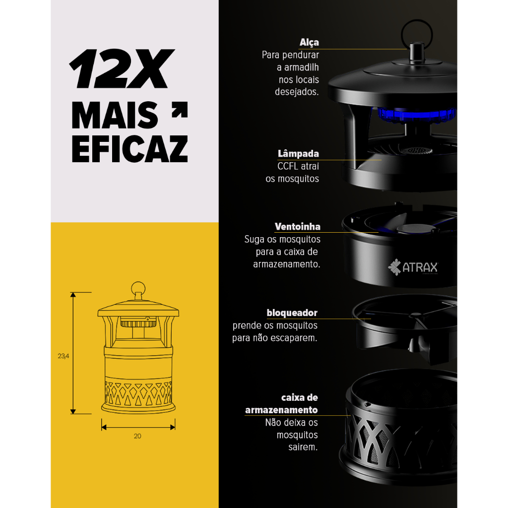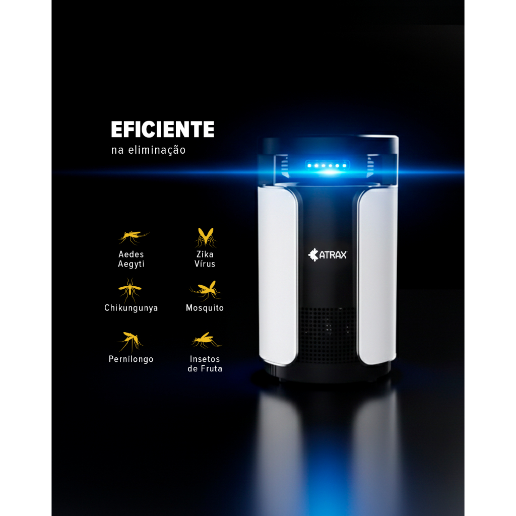 Kit Mata Mosquito Armadilha Eletrônica Silenciosa Atrax Dentro e Fora de Casa Luz UV