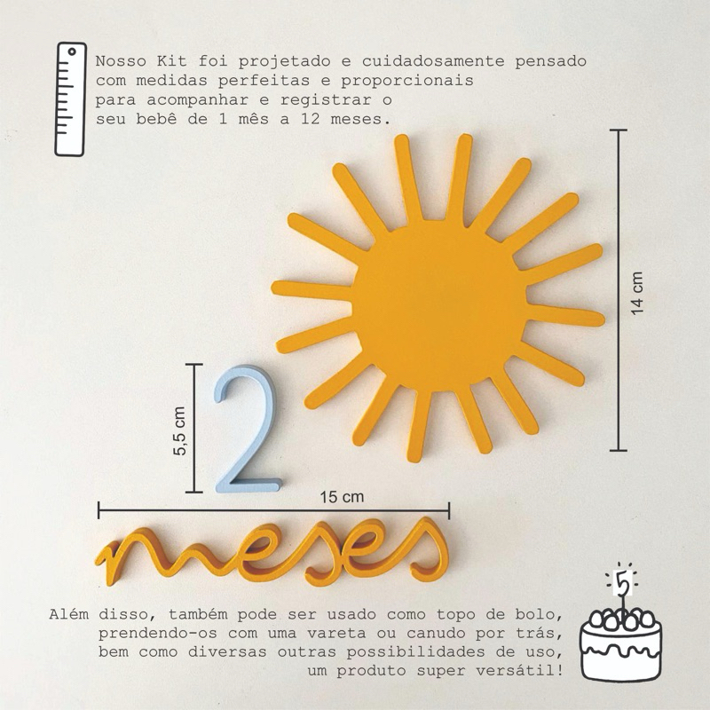 Kit Mesversário Tema Sol - MDF Premium - 15 Peças - Unissex - Pronta Entrega