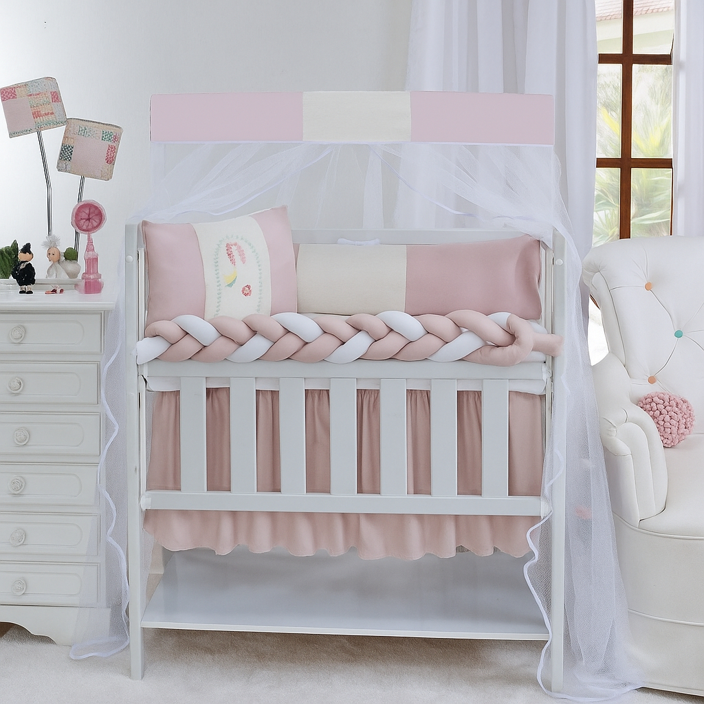Kit Mini Berço Classic Menina Menino 06 Peças Com Saia Estampado