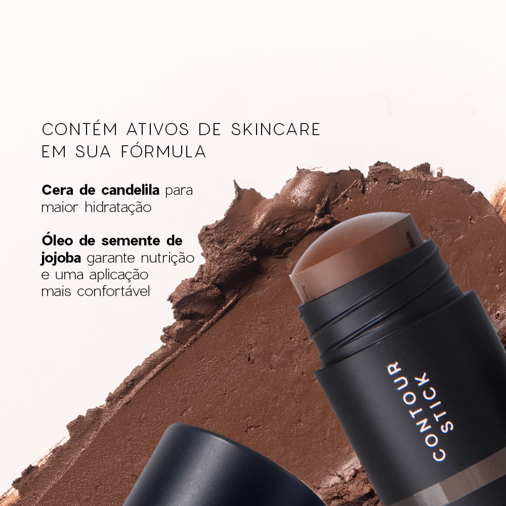 Kit Mini Blush Bastão Rosa + Mini Contorno Bastão Marrom Escuro + Mini Esponja Maquiagem Océane Edition (3 Produtos)