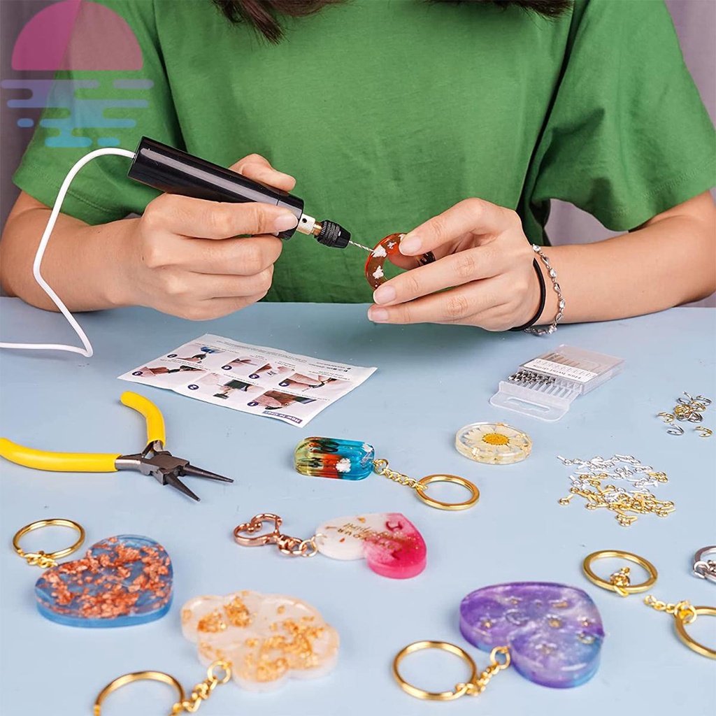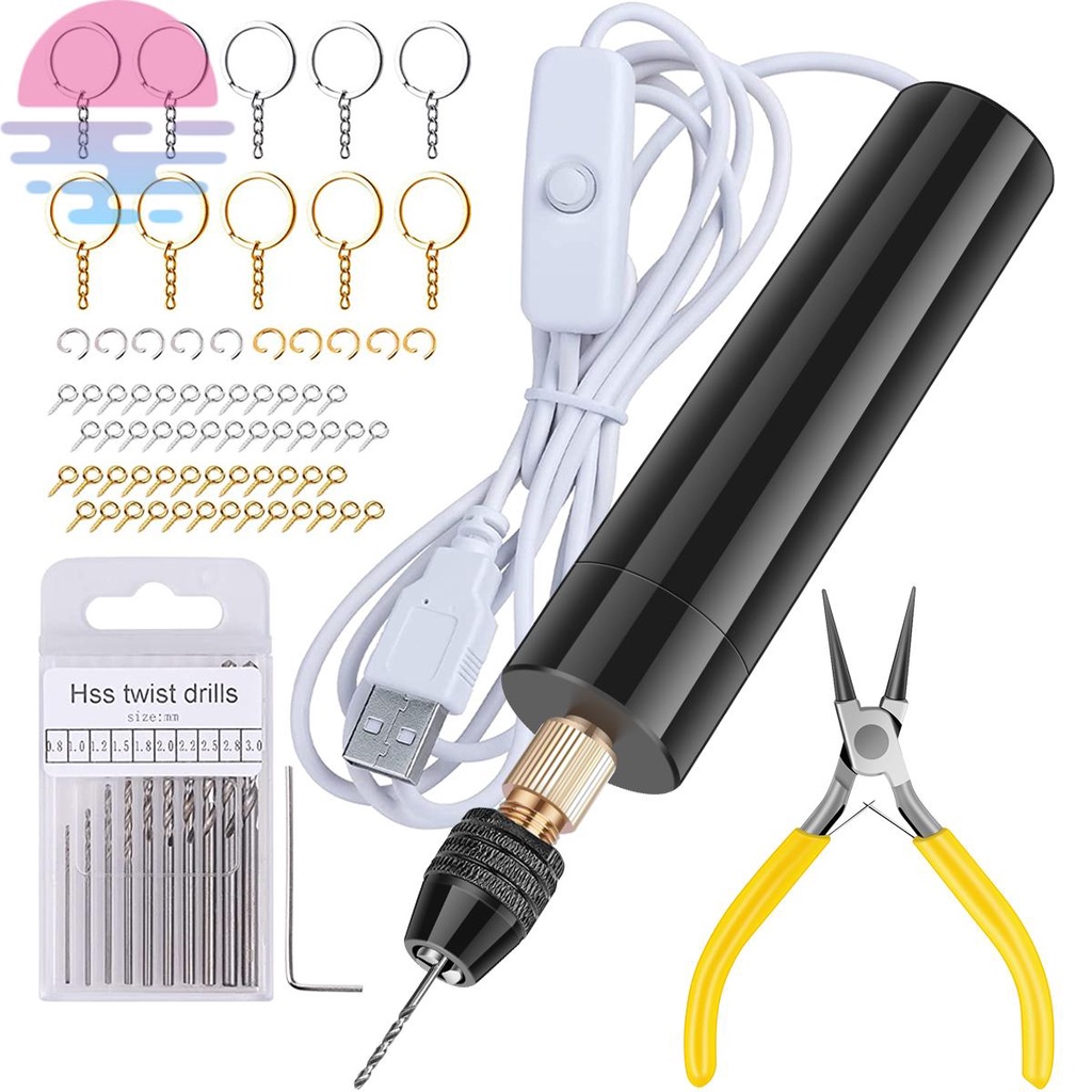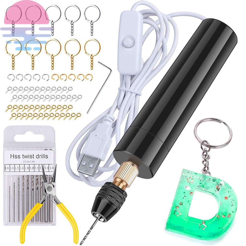 Kit Mini Furadeira Broca Elétrica De Resina USB Mini Manual Portátil Kit De Fabricação De Chaveiros Para Jóias De Resina Epóxi Pérola Fazendo Bricolagem Furadeira elétrica artesanato Biscuit+acessórios