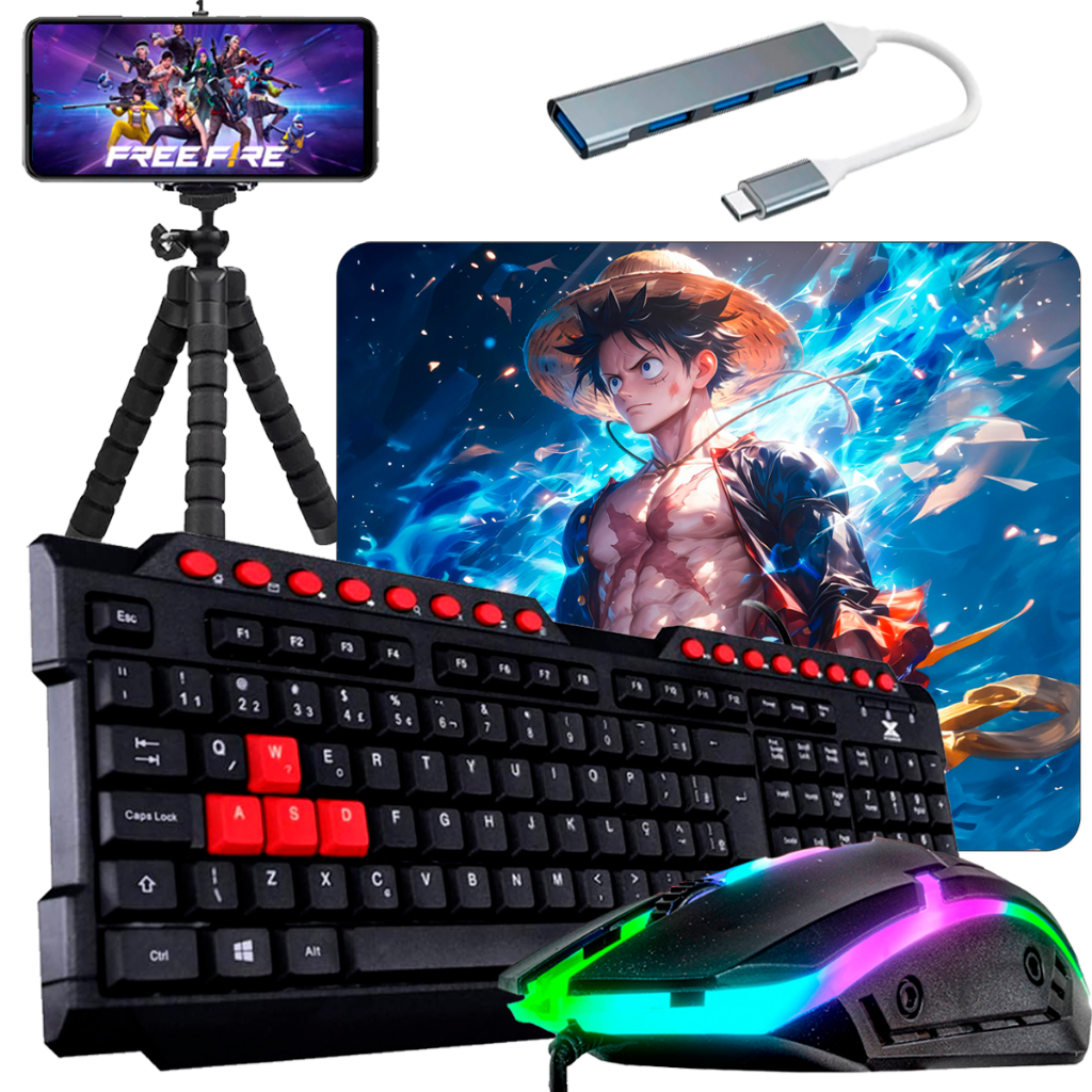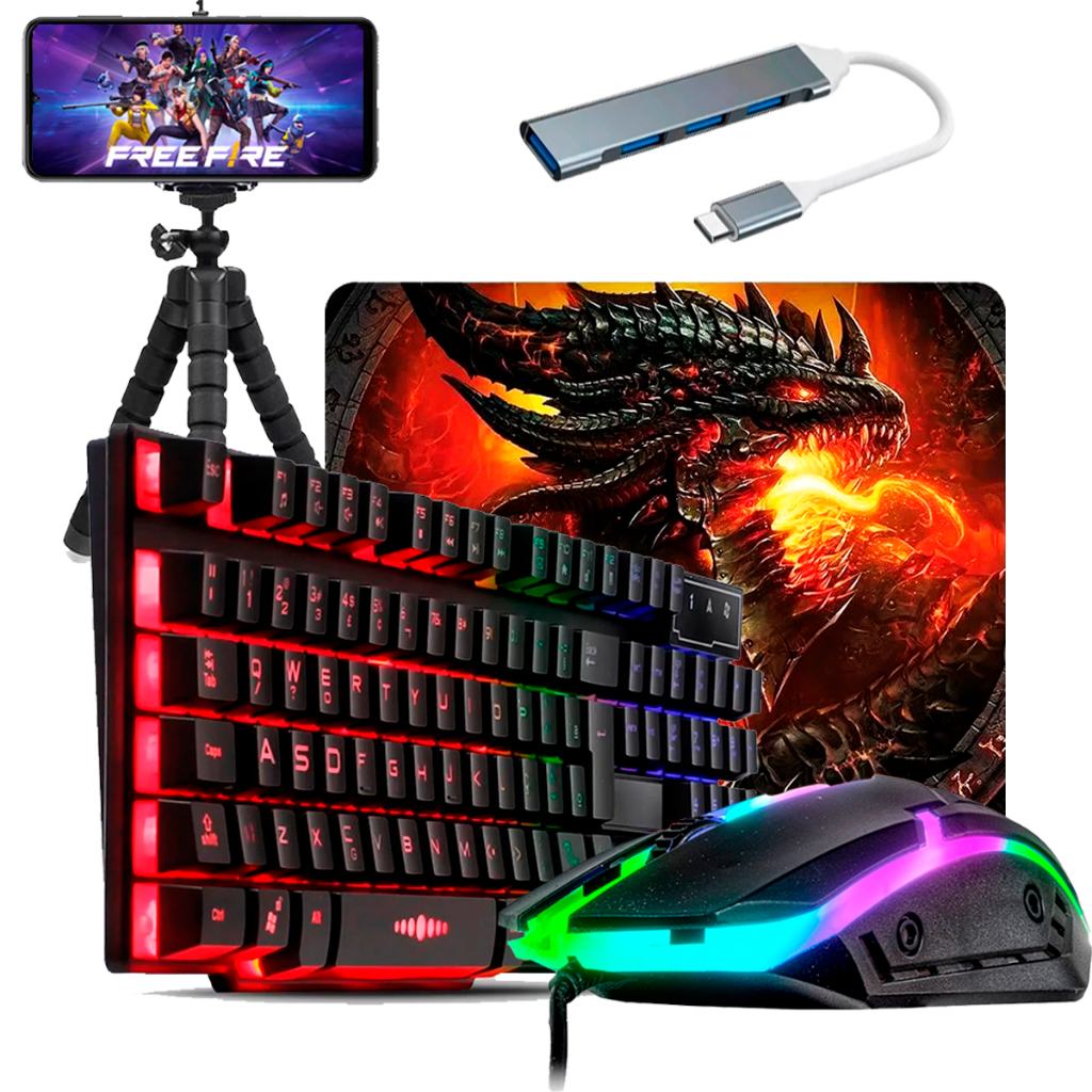 Kit Mobilador Completo Hub Tipo C Mouse Gamer Teclado Uma Mão Mouse Pad Tripe