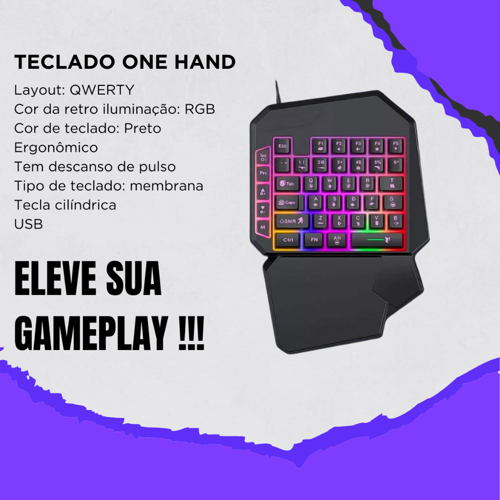 Kit Mobilador Completo Teclado One Hand Uma Mao Hub Tipo C