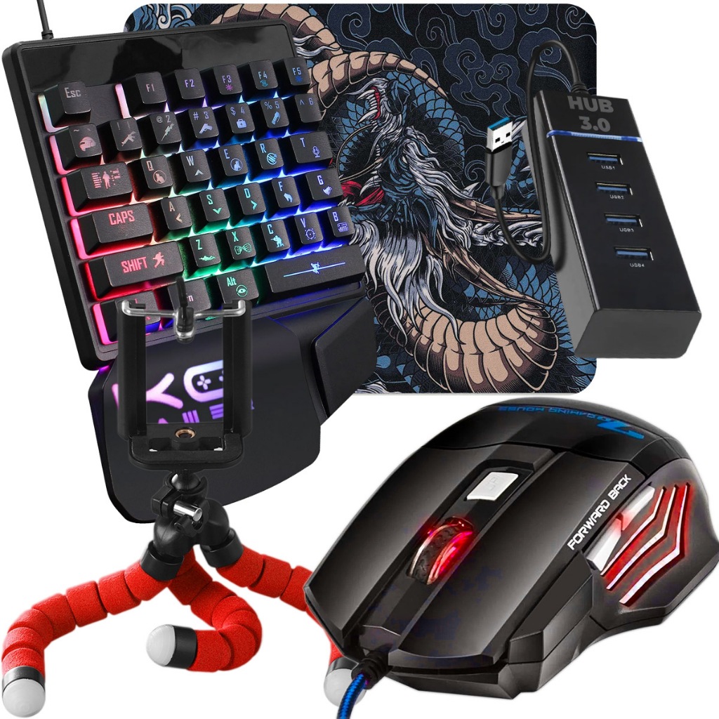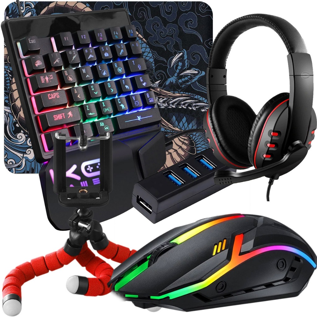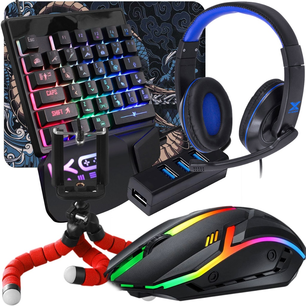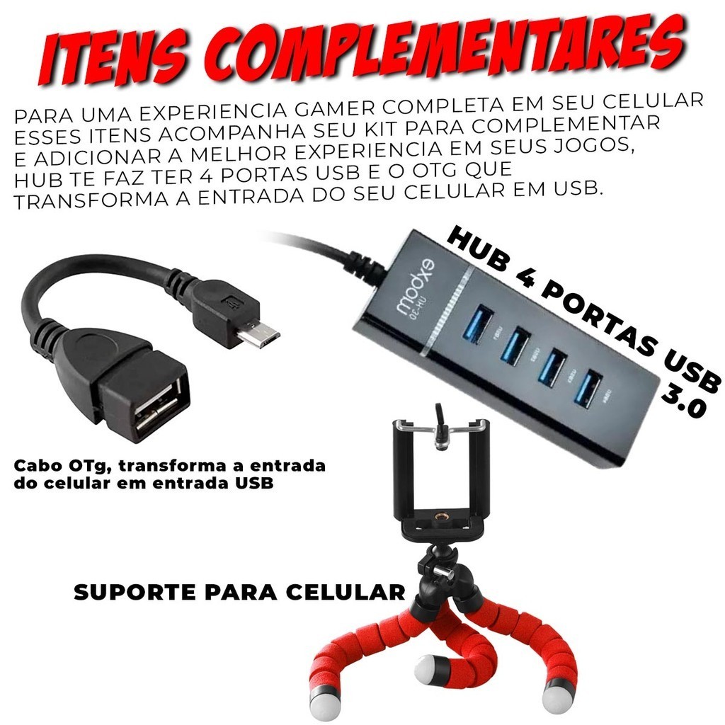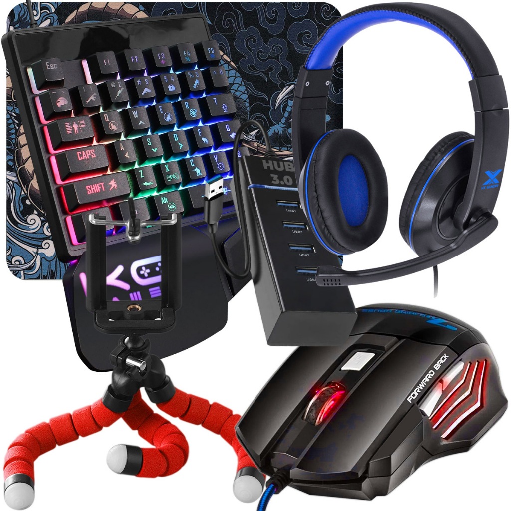 Kit Mobilador Completo de Headset Hub 3.0 Mouse Gamer Led Pad Speed Suporte de Celular