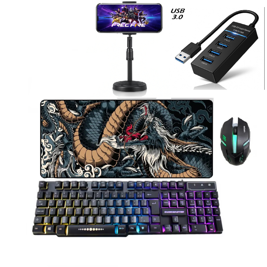 Kit Mobilador Fire Gamer Android Free Teclado Mouse Suporte Celular Jogos Hub 4 Portas Mouse Pad