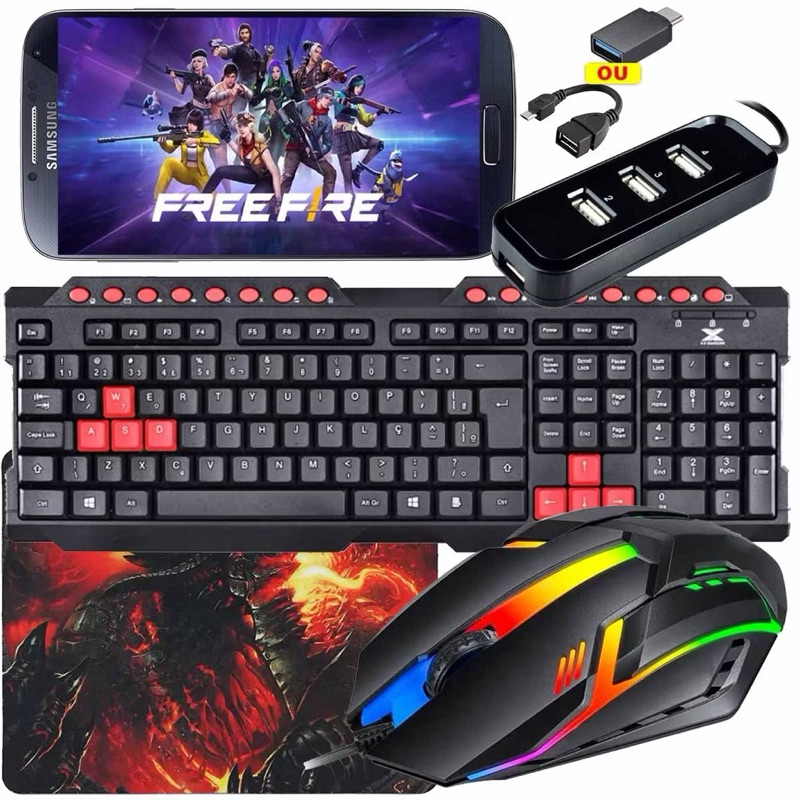 Kit Mobilador Gamer Com Teclado Vermelho Multimidia + Mouses Para Jogos + Pad Speed
