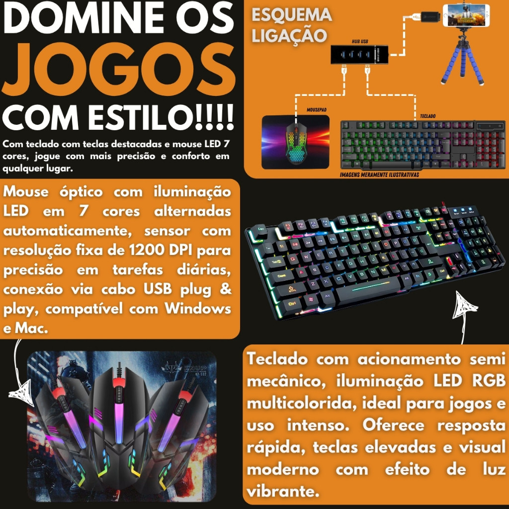 Kit Mobilador Gamer Completo Promoção Para Celular Com Teclado Semi Mecânico Led + Mouse Óptico