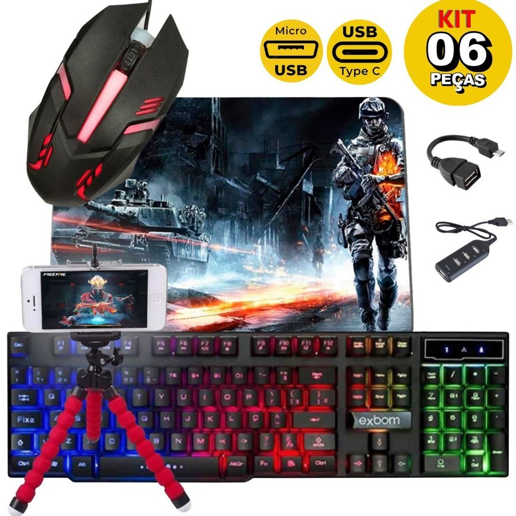 Kit Mobilador Gamer Completo Teclado + Mouse Free Fire Lol