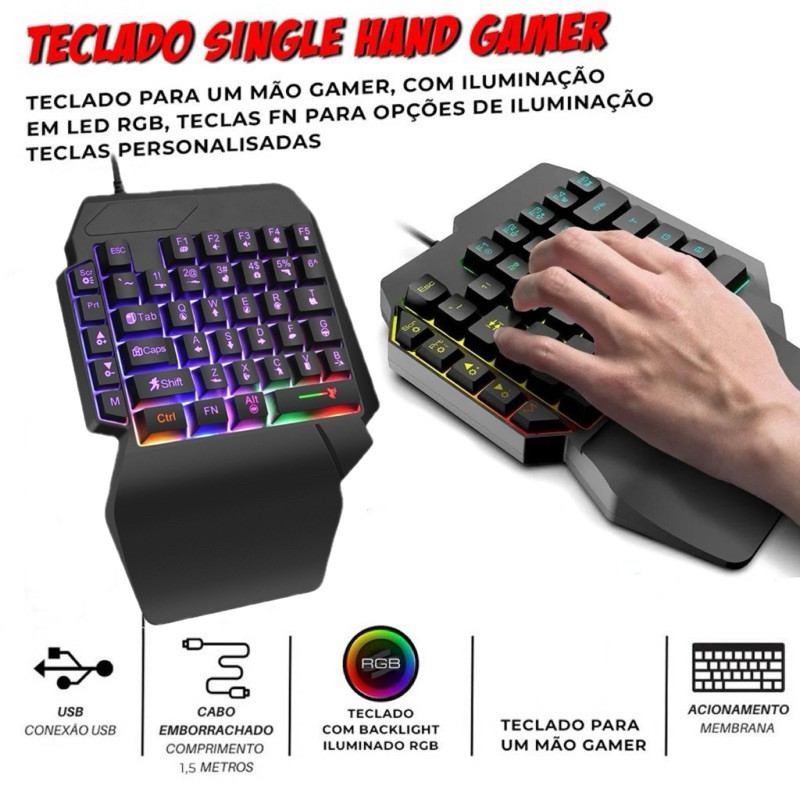 Kit Mobilador Gamer de Celular Teclado Uma Mao RGB Compreto Ponto Entrega