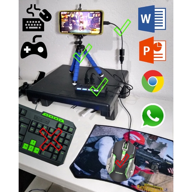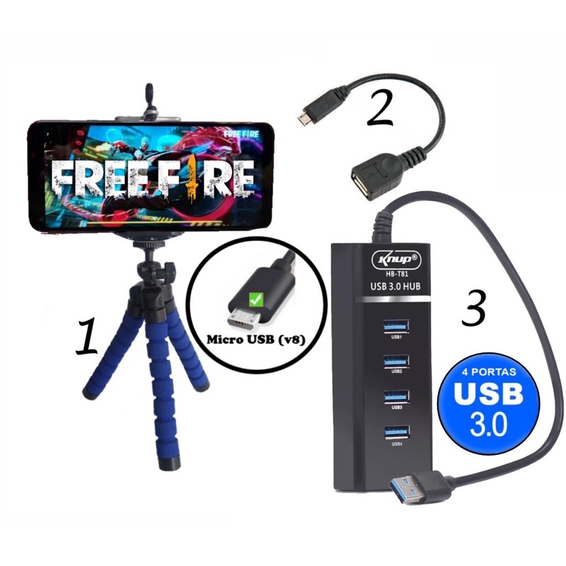 Kit Mobilador Hub USB 2.0 ou 3.0 Para Celular e Pc Bom Para Teclado Mouse