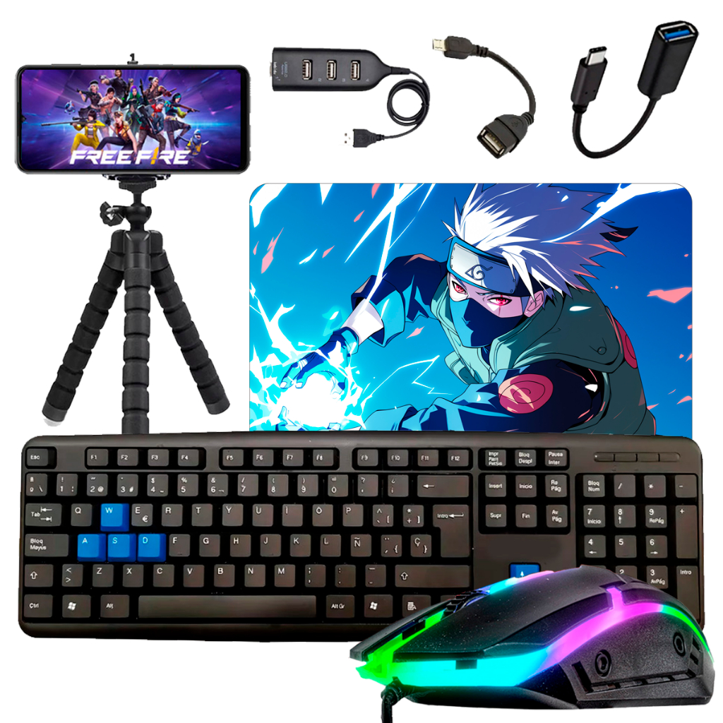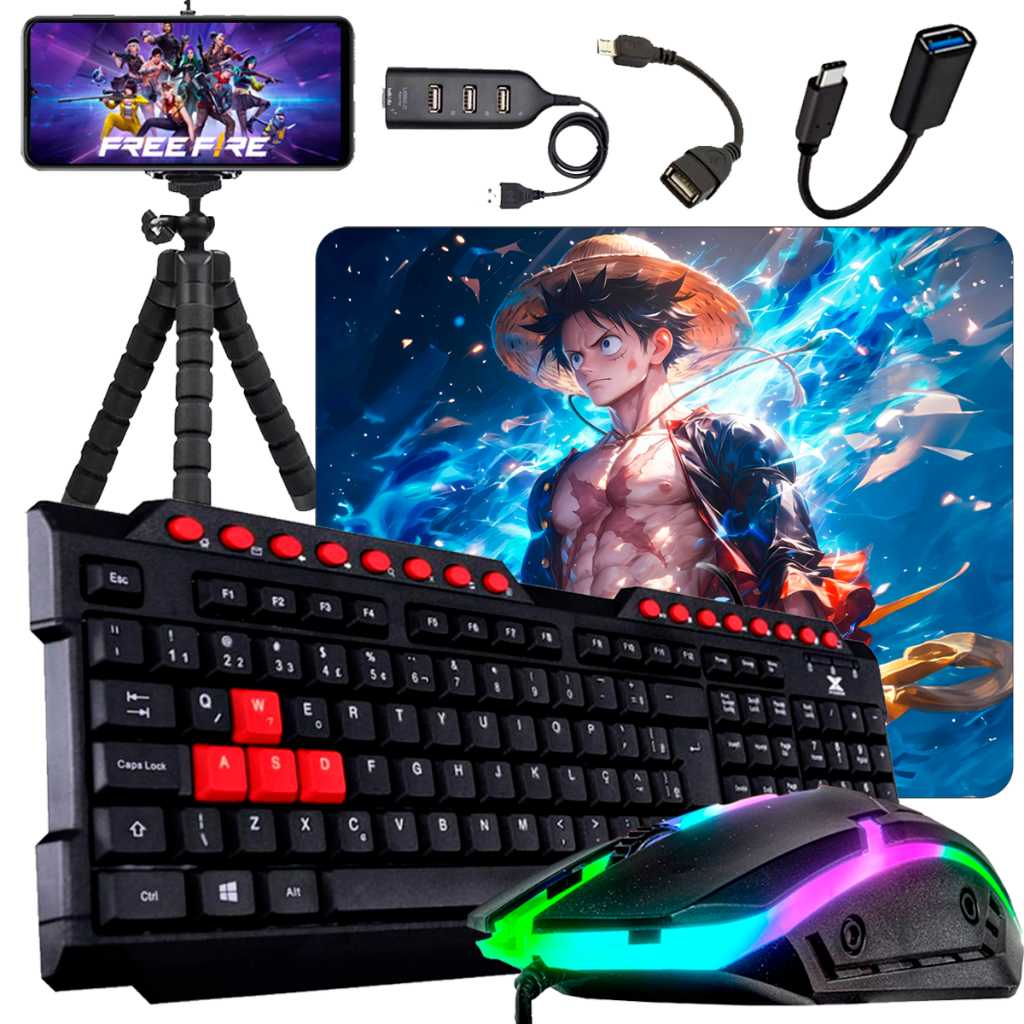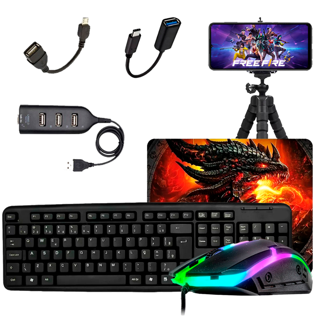 Kit Mobilador One Hand Gamer Completo Para Celular Com Teclado + Mouse Gamer Led RGB