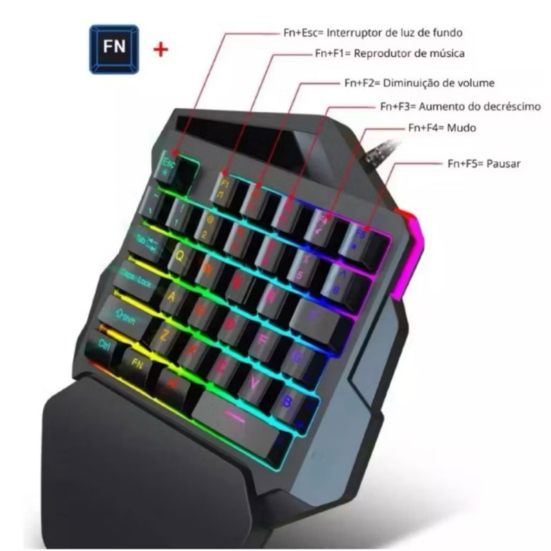 Kit Mobilador One Hand Gamer Completo Para Celular Com Teclado + Mouse Gamer Led RGB
