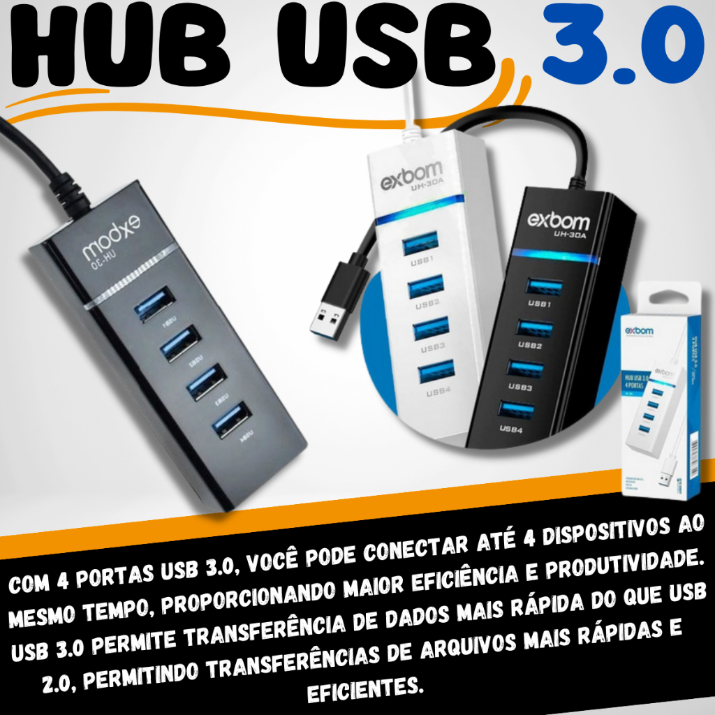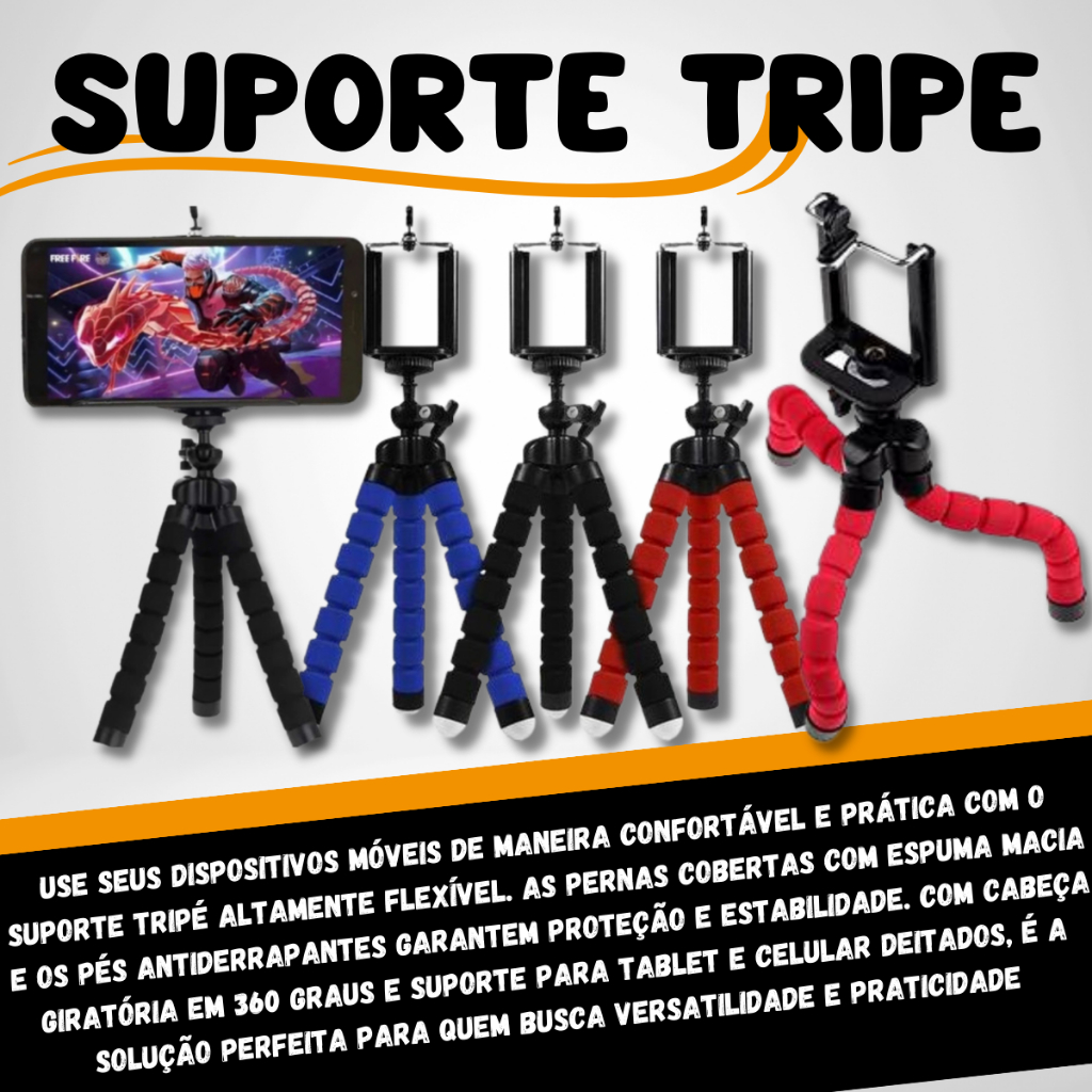 Kit Mobilador Original Hub 3.0 Usb 4 Portas + Adaptador Otg Celular + Suporte Tripe Flexivel Celular Tablet Gamer