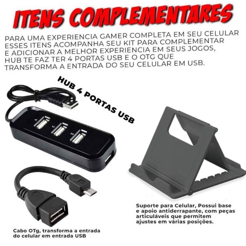 Kit Mobilador Para Celular Gamer Com Tripe Mouse Teclado Led
