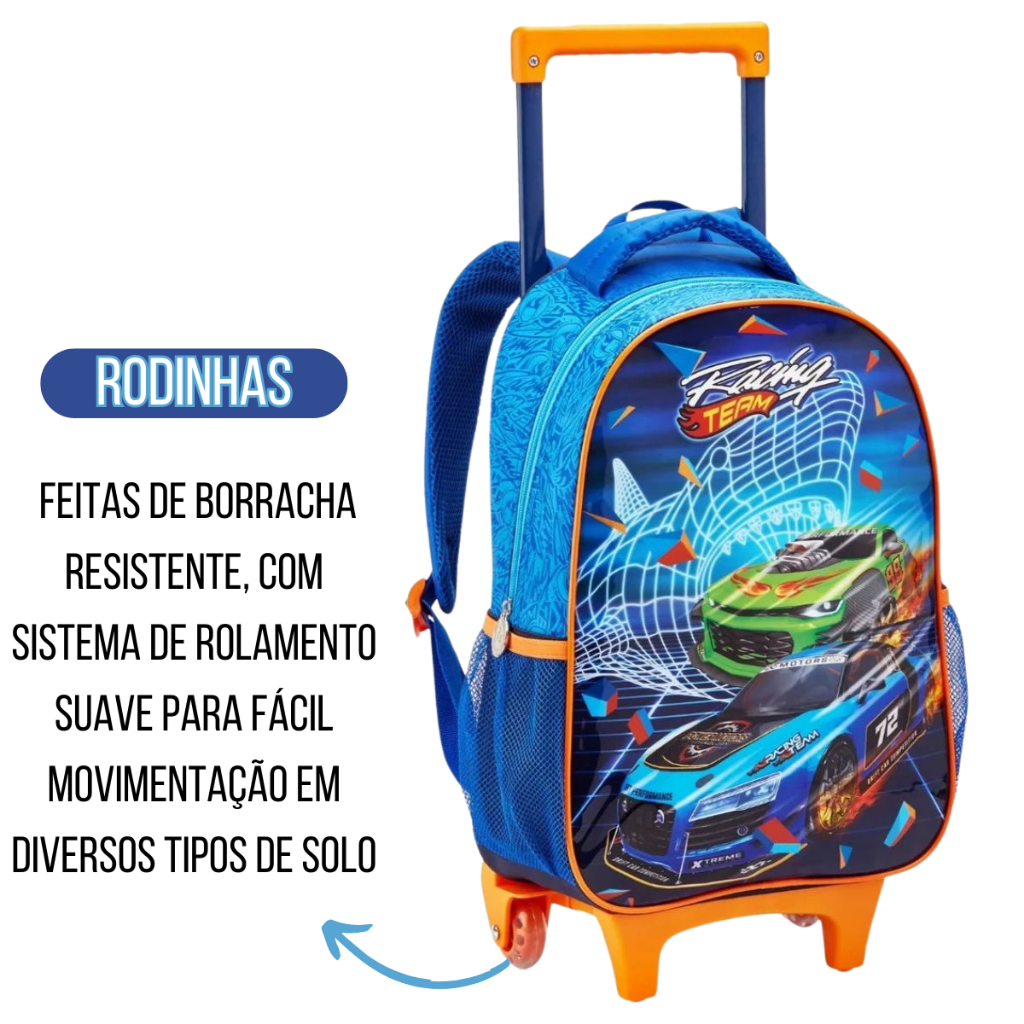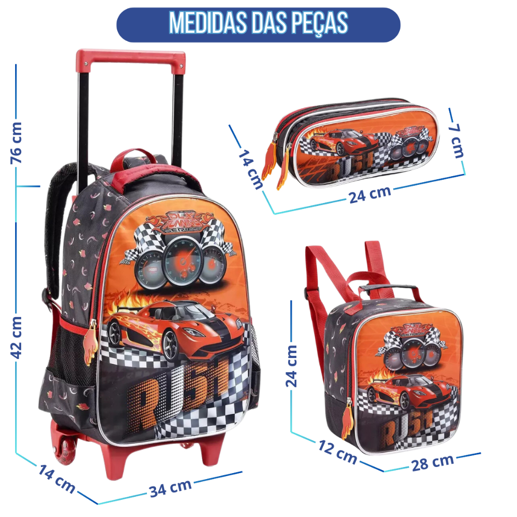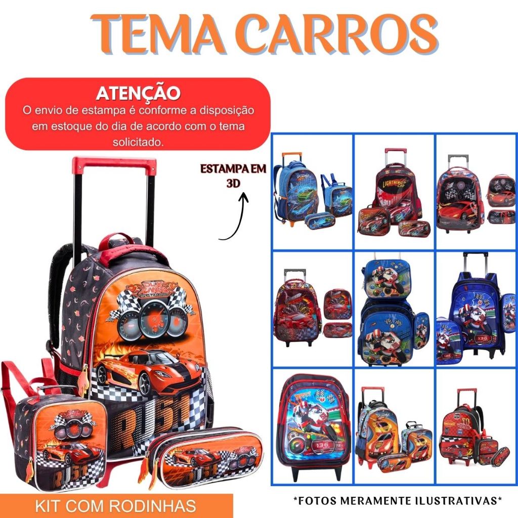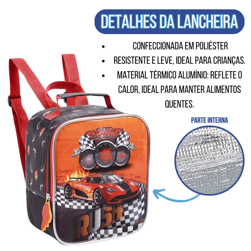 Kit Mochila 2 Em 1 Infantil Menino Carros Linda Reforçada Prática Multifuncional