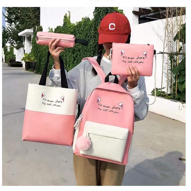 Kit Mochila + Bolsas Juvenil Escolar Passeio C/ Chaveiro B&g