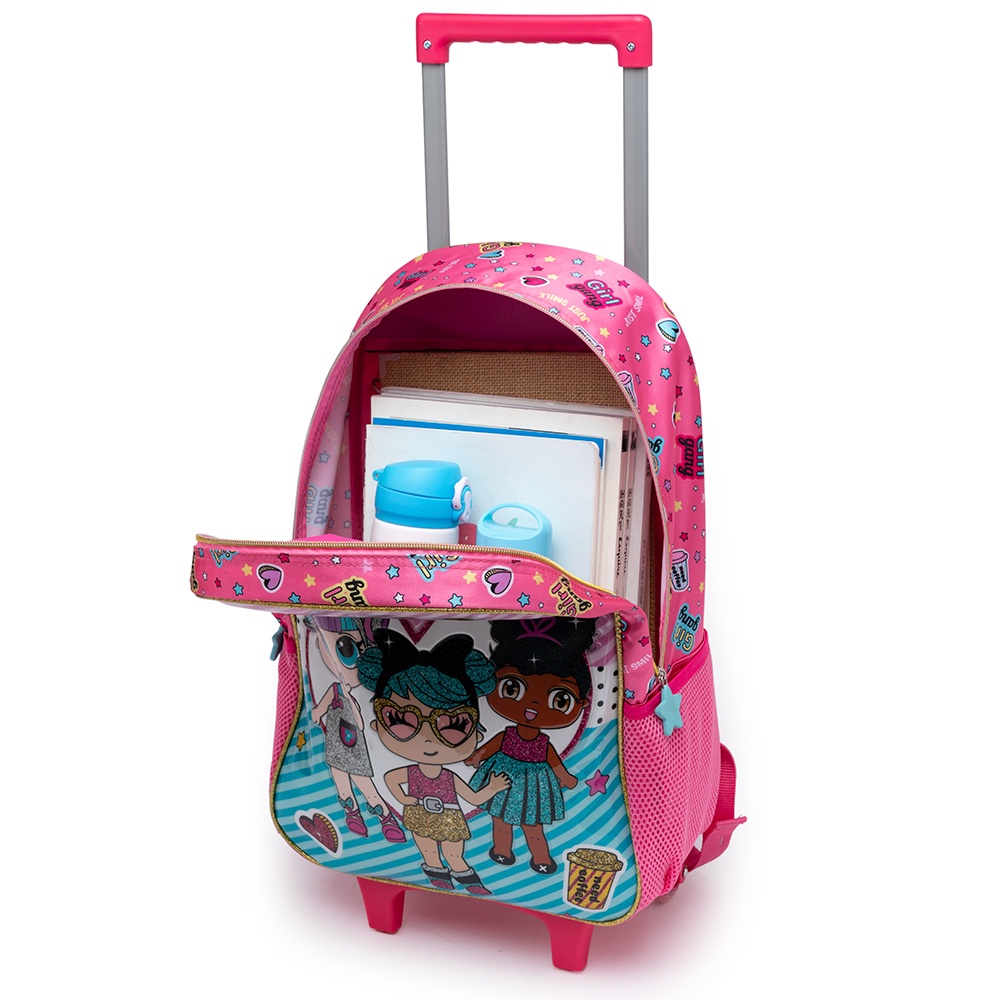 Kit Mochila Carrinho Lancheira Estojo Duplo Infantil Reforçado Menina Reforçada Escolar
