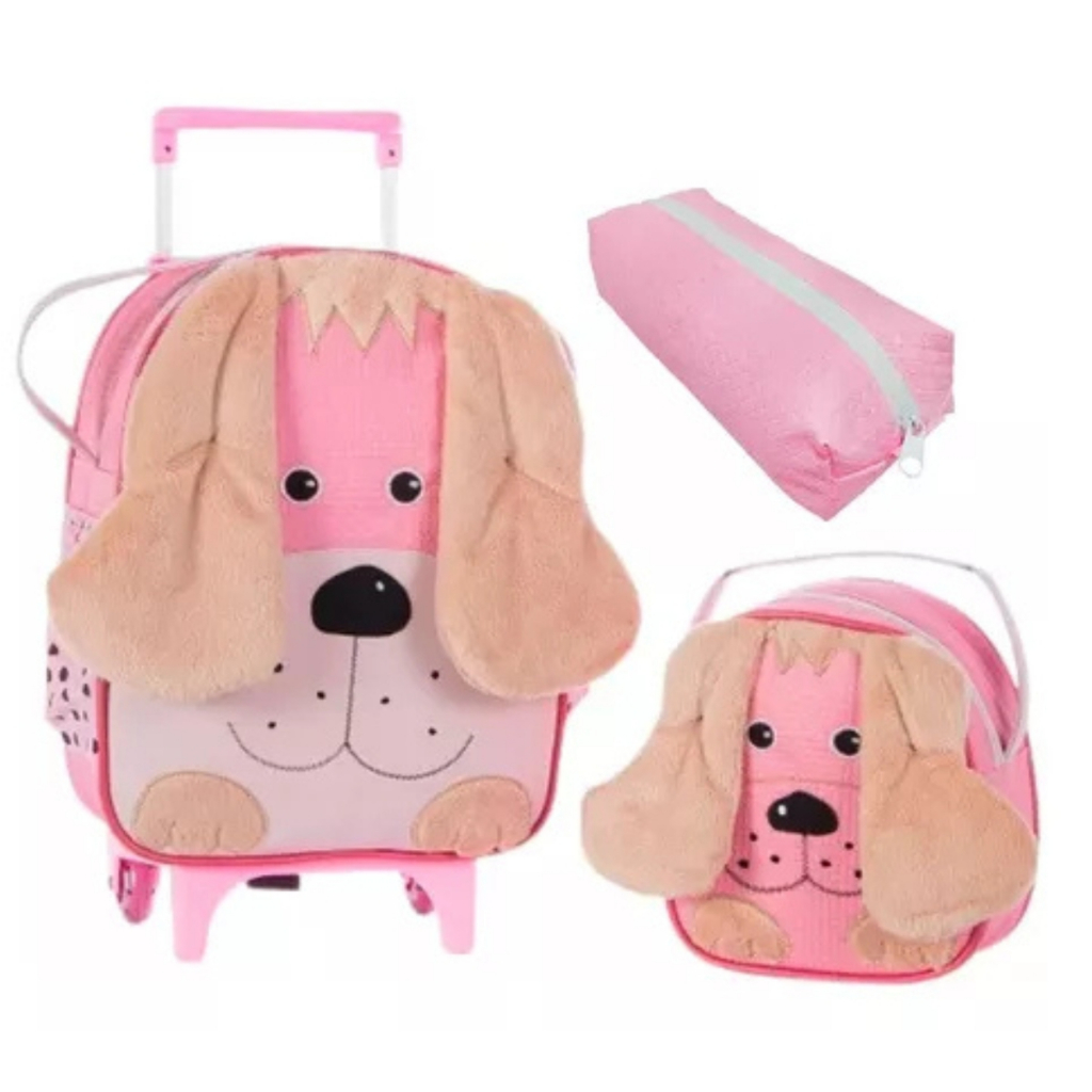 Kit Mochila De Carrinho G Infantil Escolar Menina Linda + Lancheira P