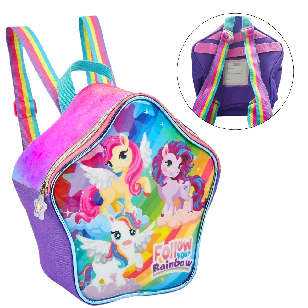 Kit Mochila De Rodinhas Lancheira Estojo Unicórnio Rainbow
