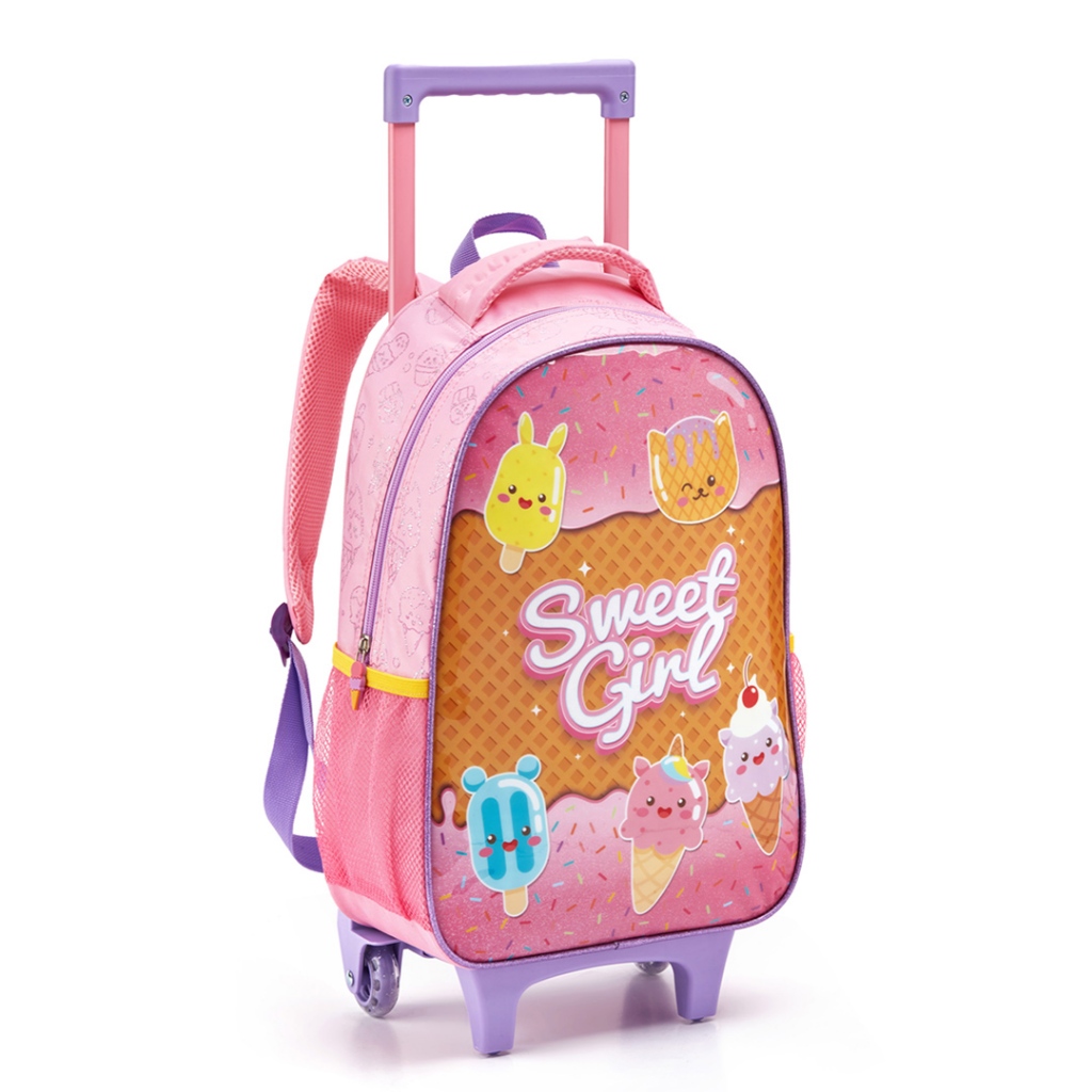 Kit Mochila Escolar Infantil Feminina Com Rodinhas Conjunto Super Fofa
