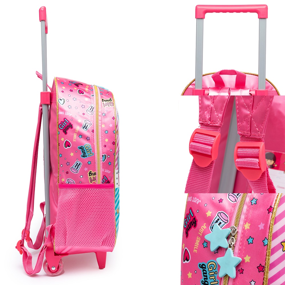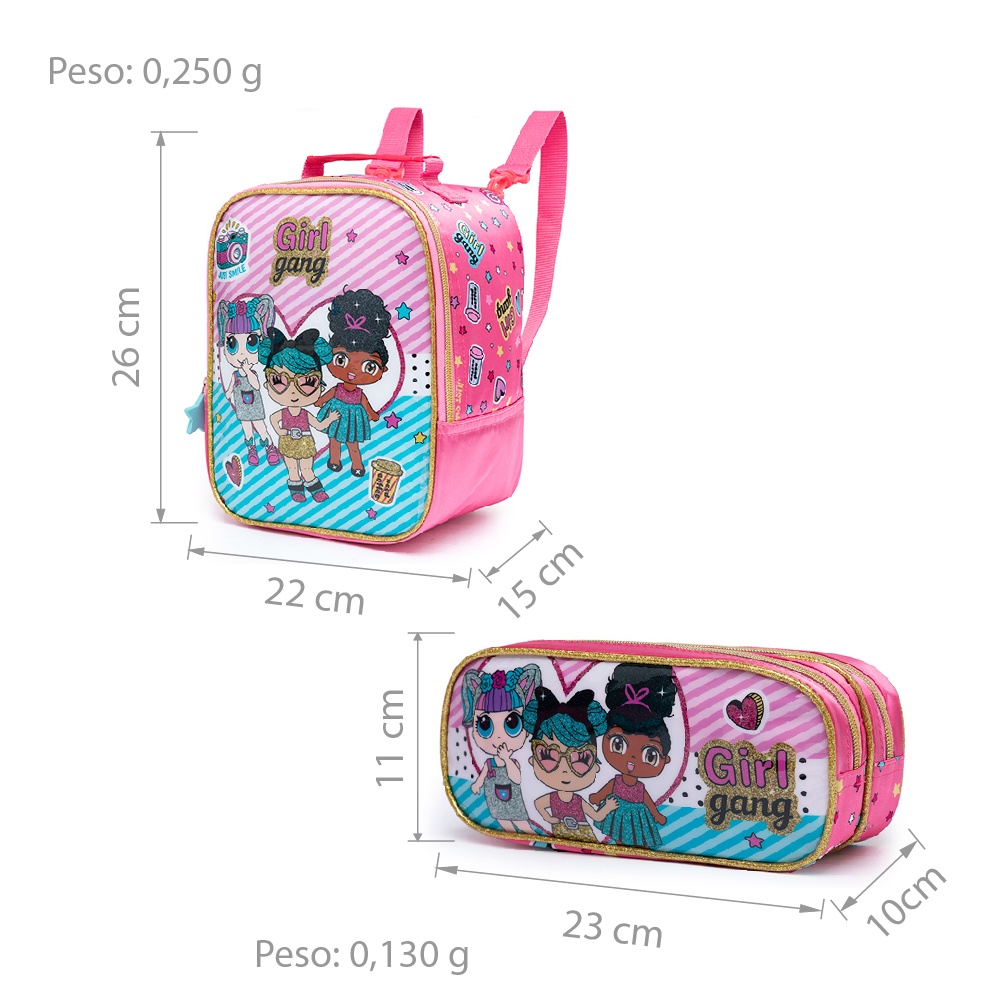 Kit Mochila Escolar Infantil Lol Grils Gang Rodinha Glitter