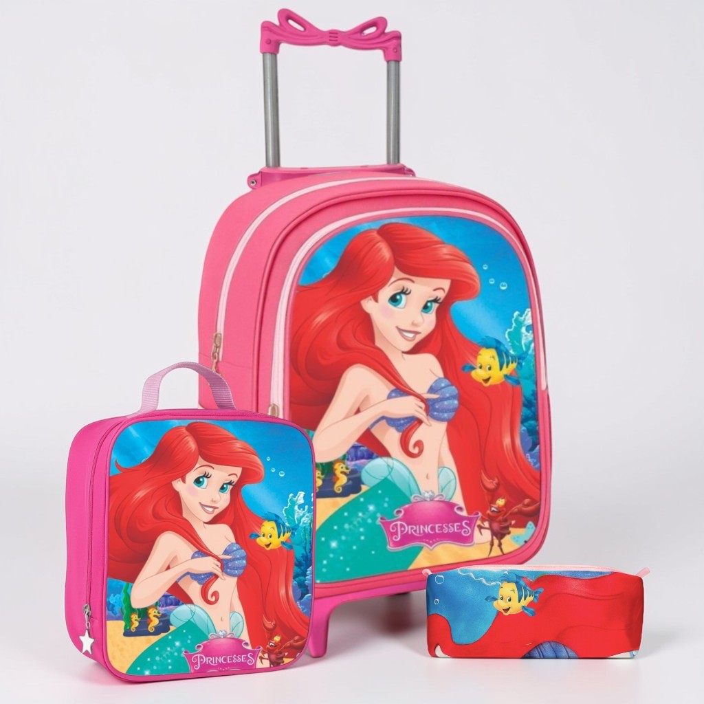 Kit Mochila Escolar Rodinha Infantil Menina + Lancheira Térmica + Estojo