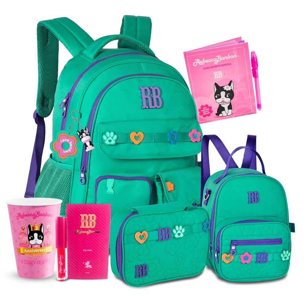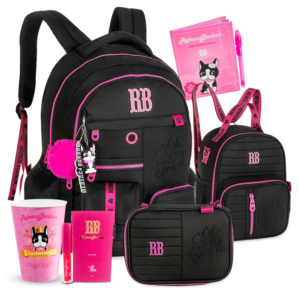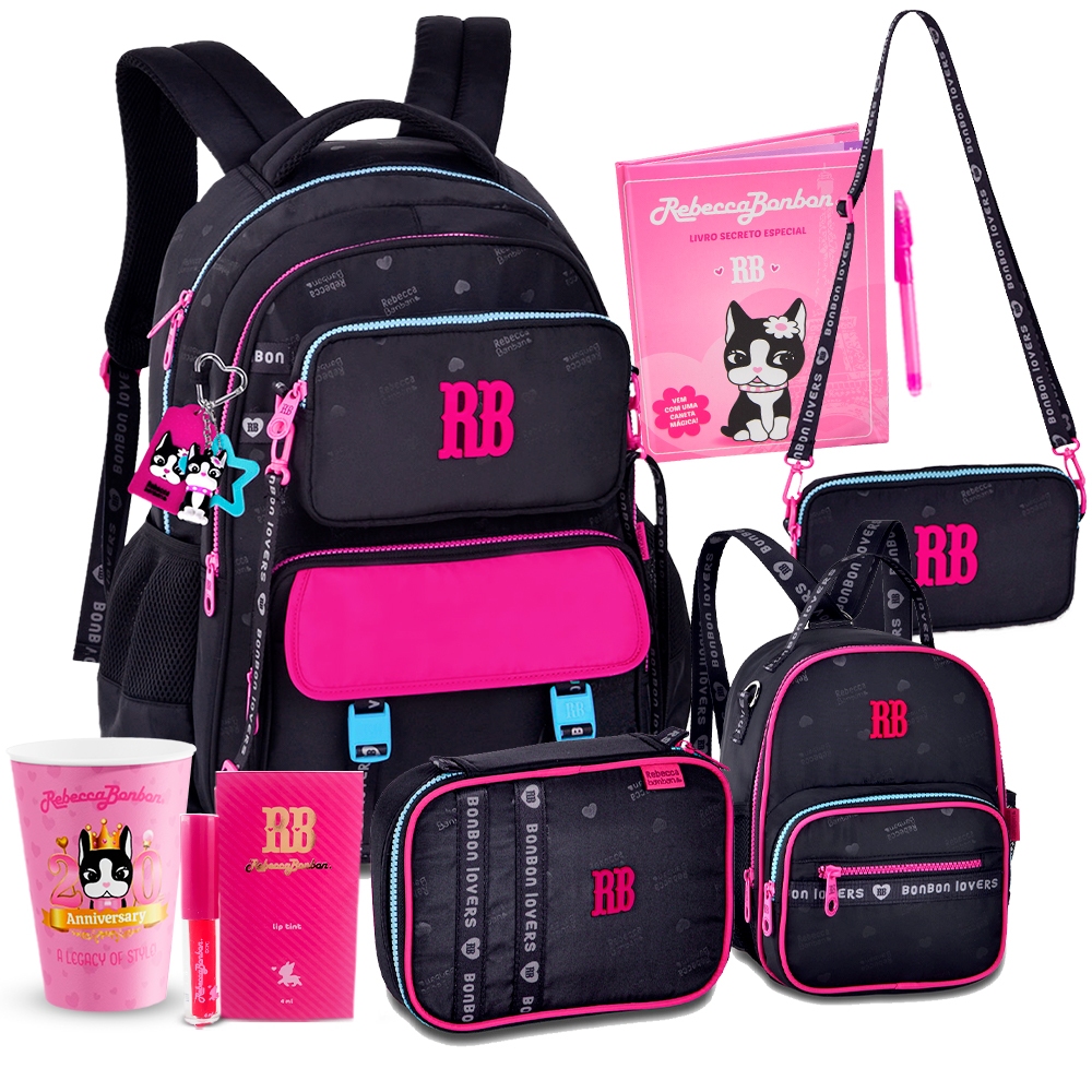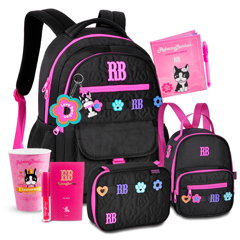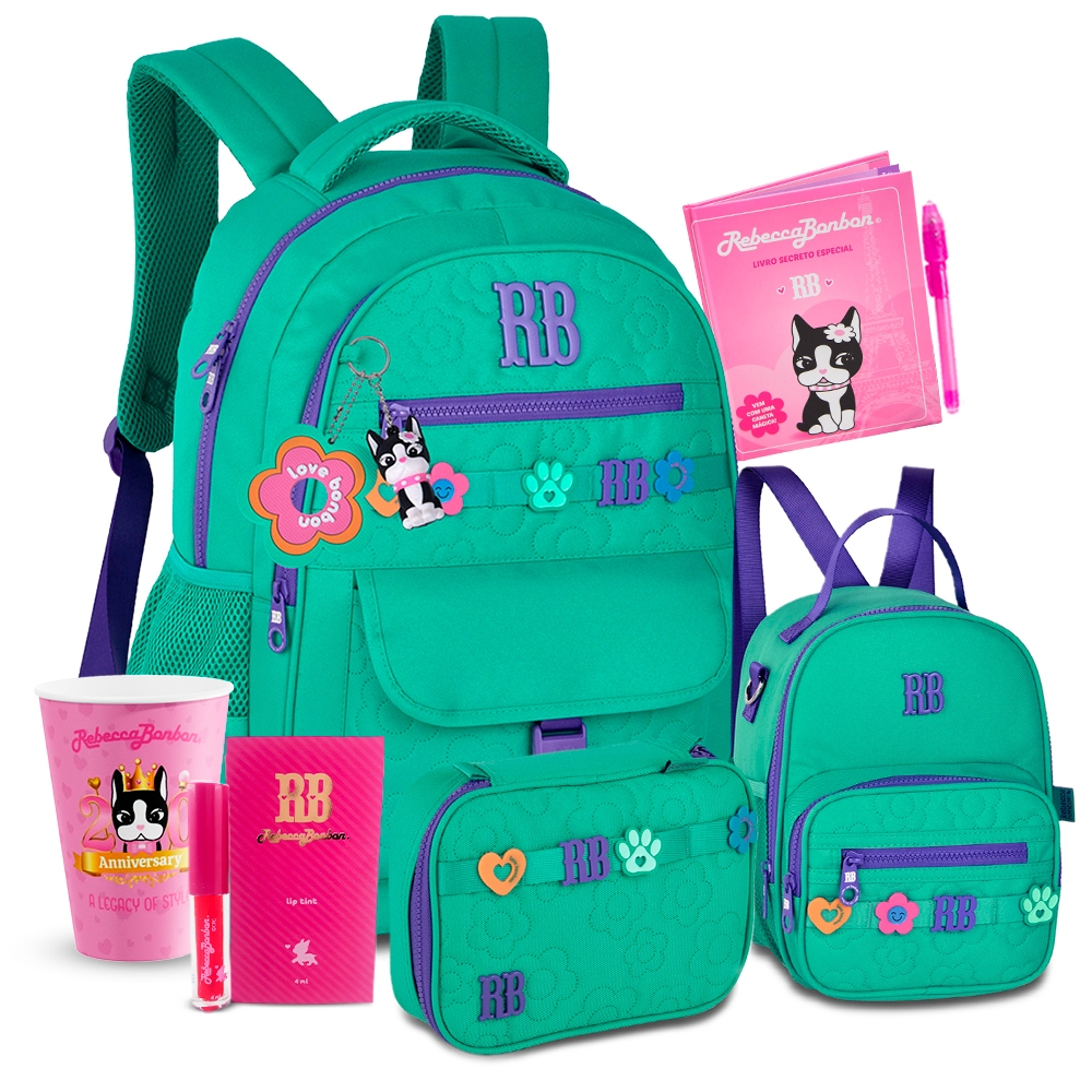 Kit Mochila Escolar Estojo Box Lancheira Térmica Rebecca Bonbon Juvenil Feminino Holoráfico