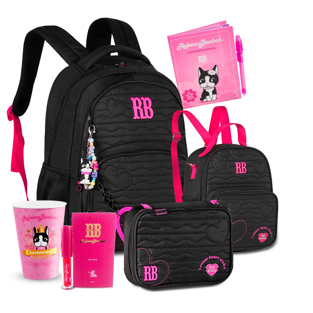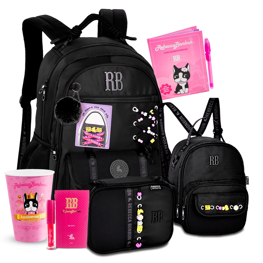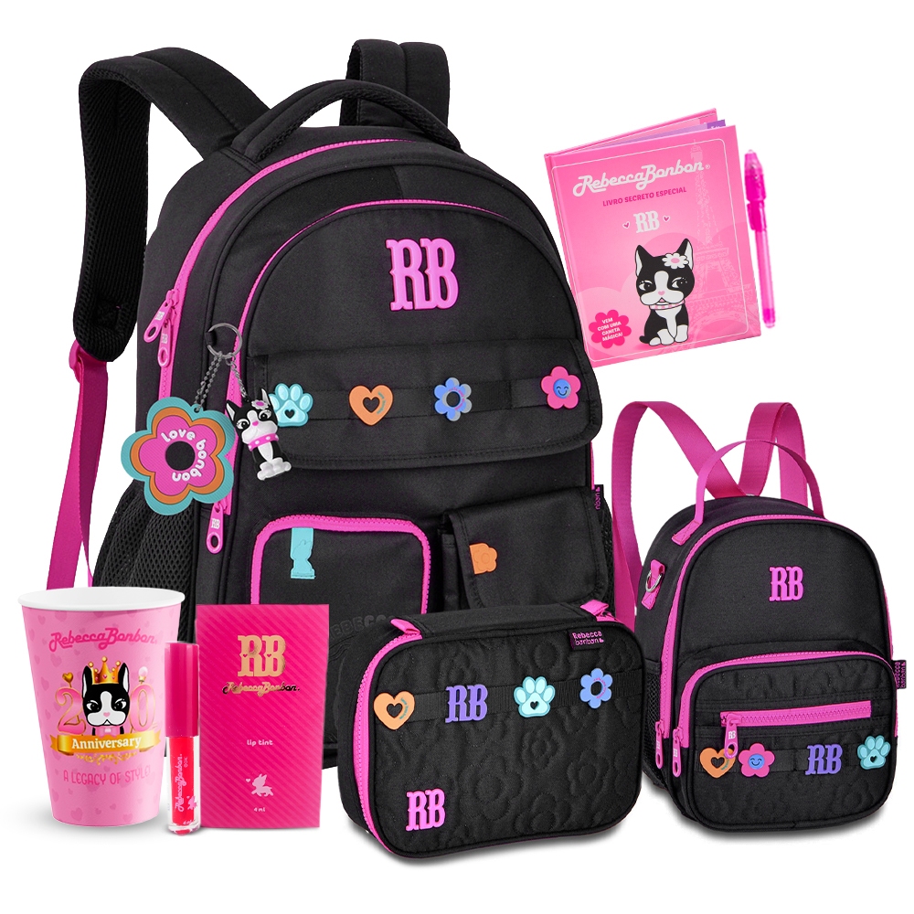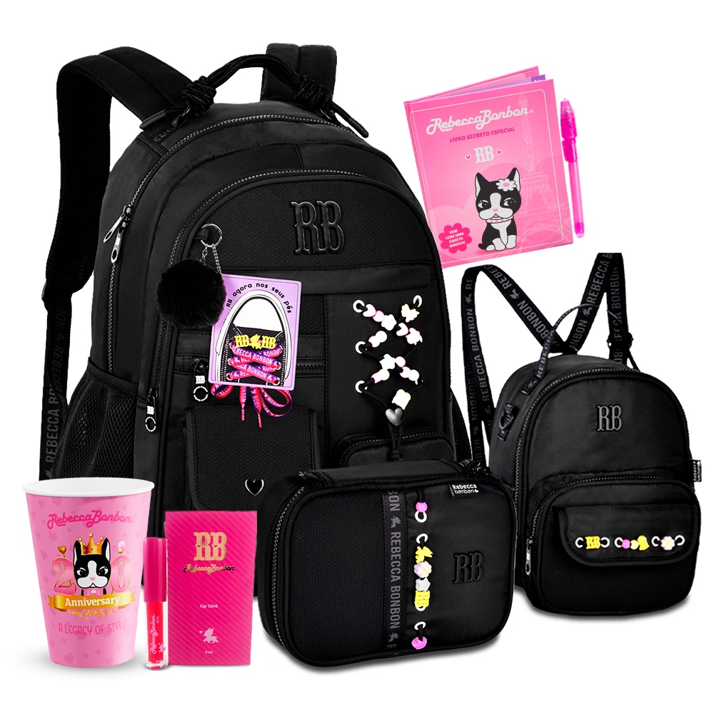 Kit Mochila Escolar Estojo Box Lancheira Térmica Rebecca Bonbon Juvenil Feminino Holoráfico
