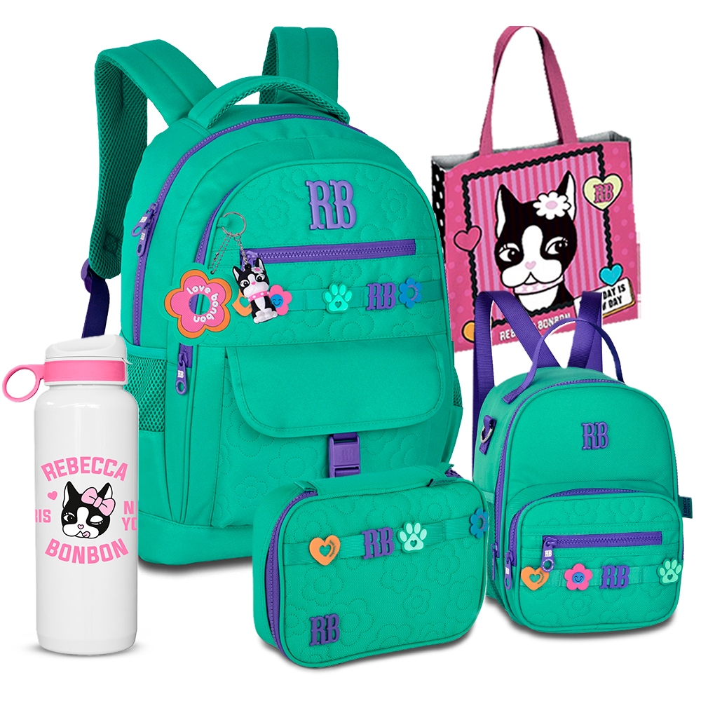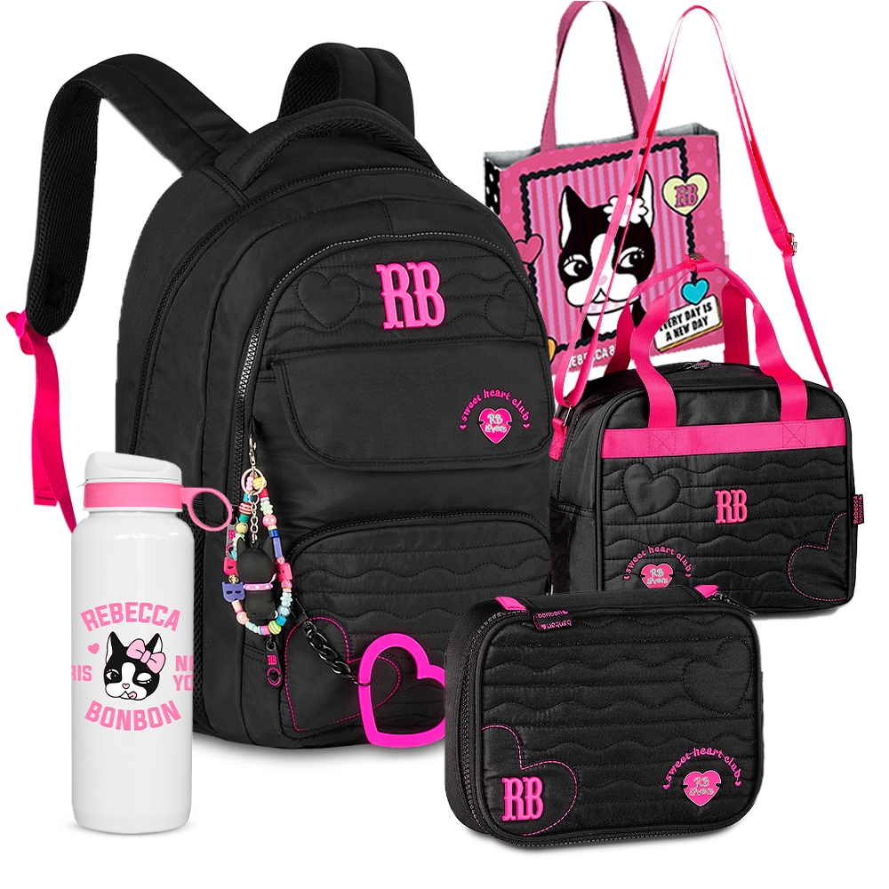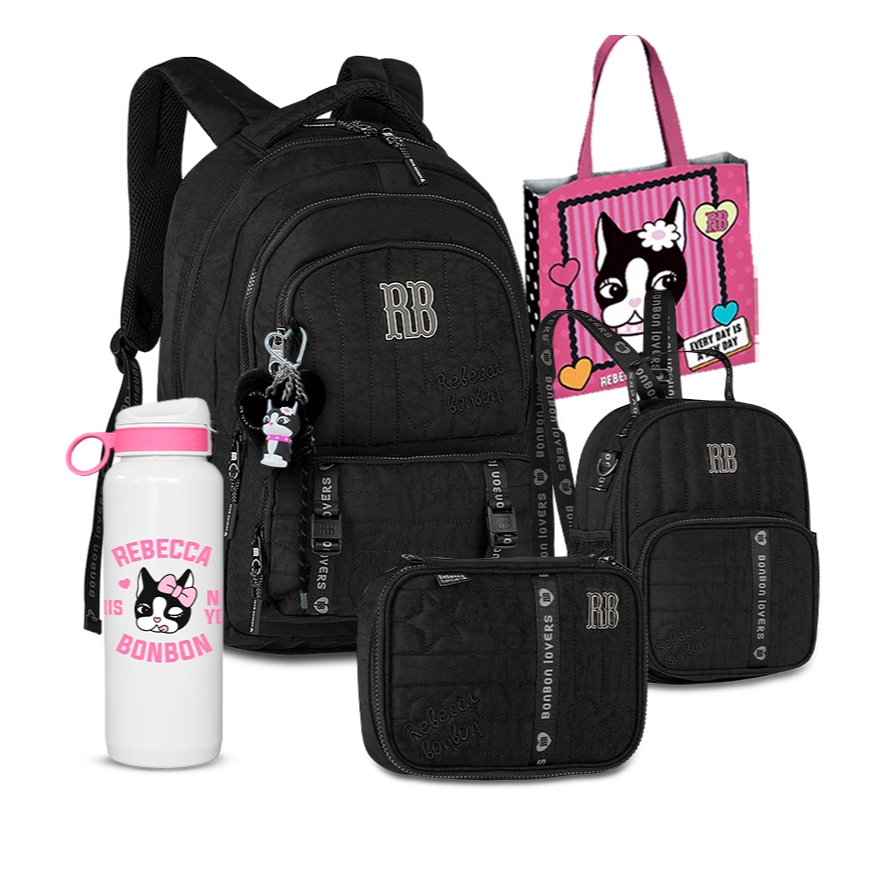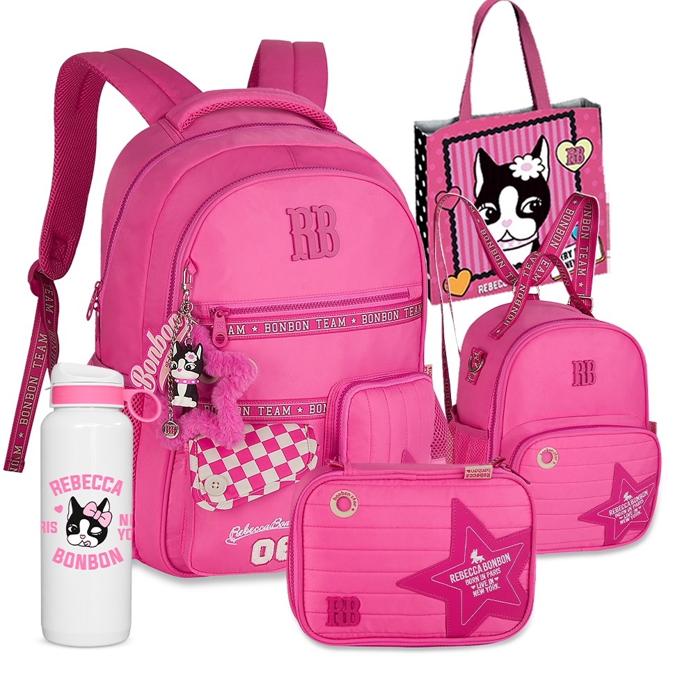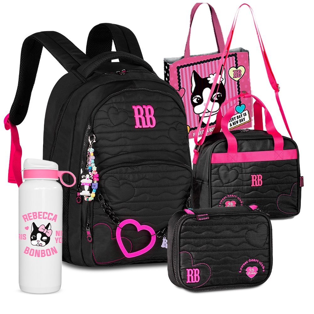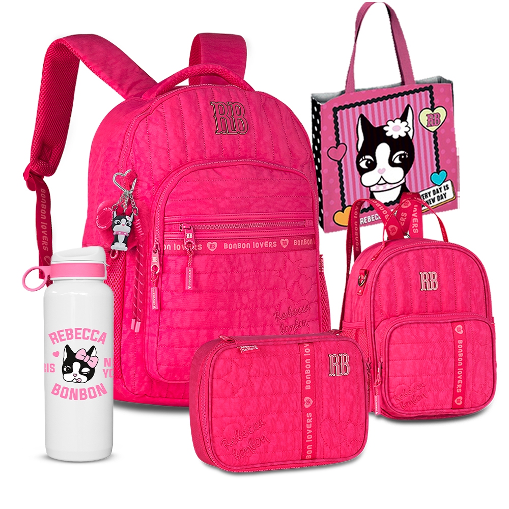 Kit Mochila Estojo Lancheira Metalizada Squeeze Oficial Rb Lancamento Meninas Juvenil