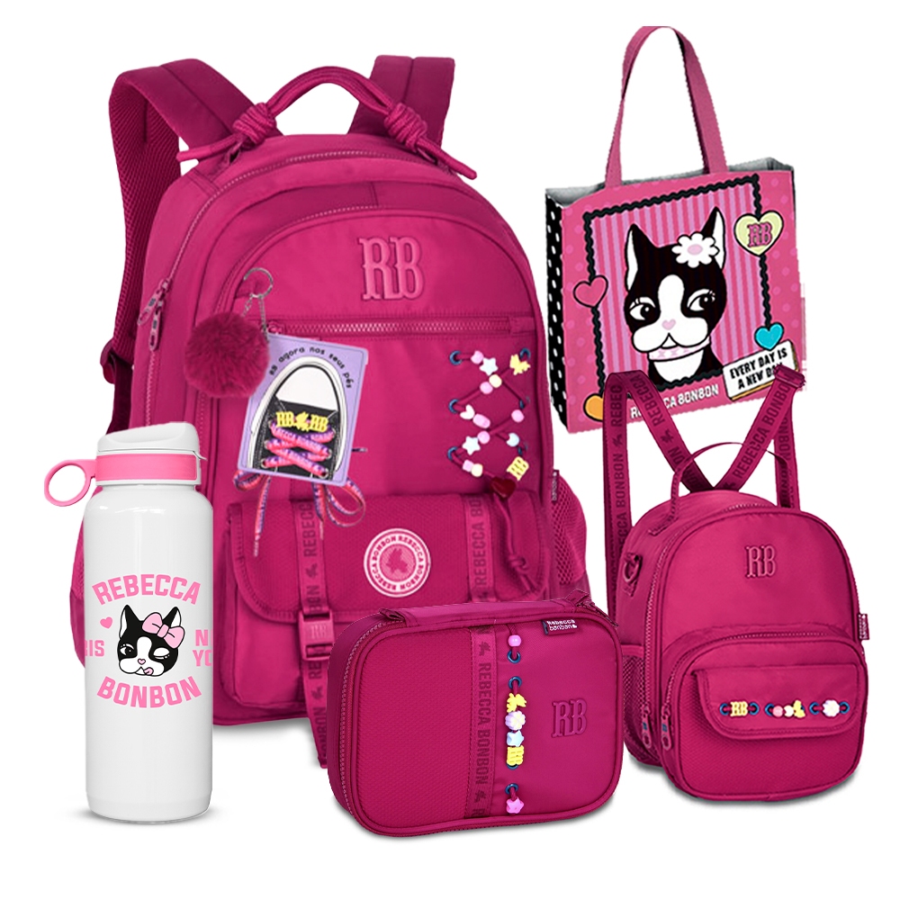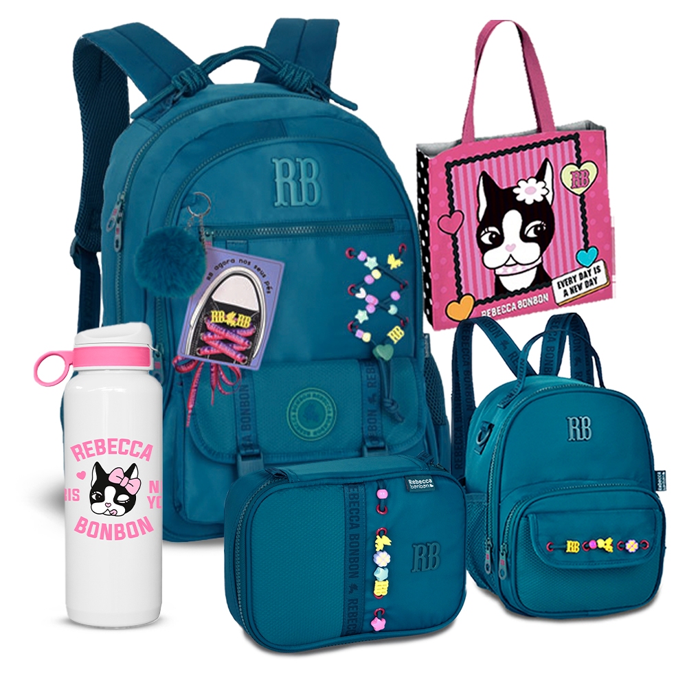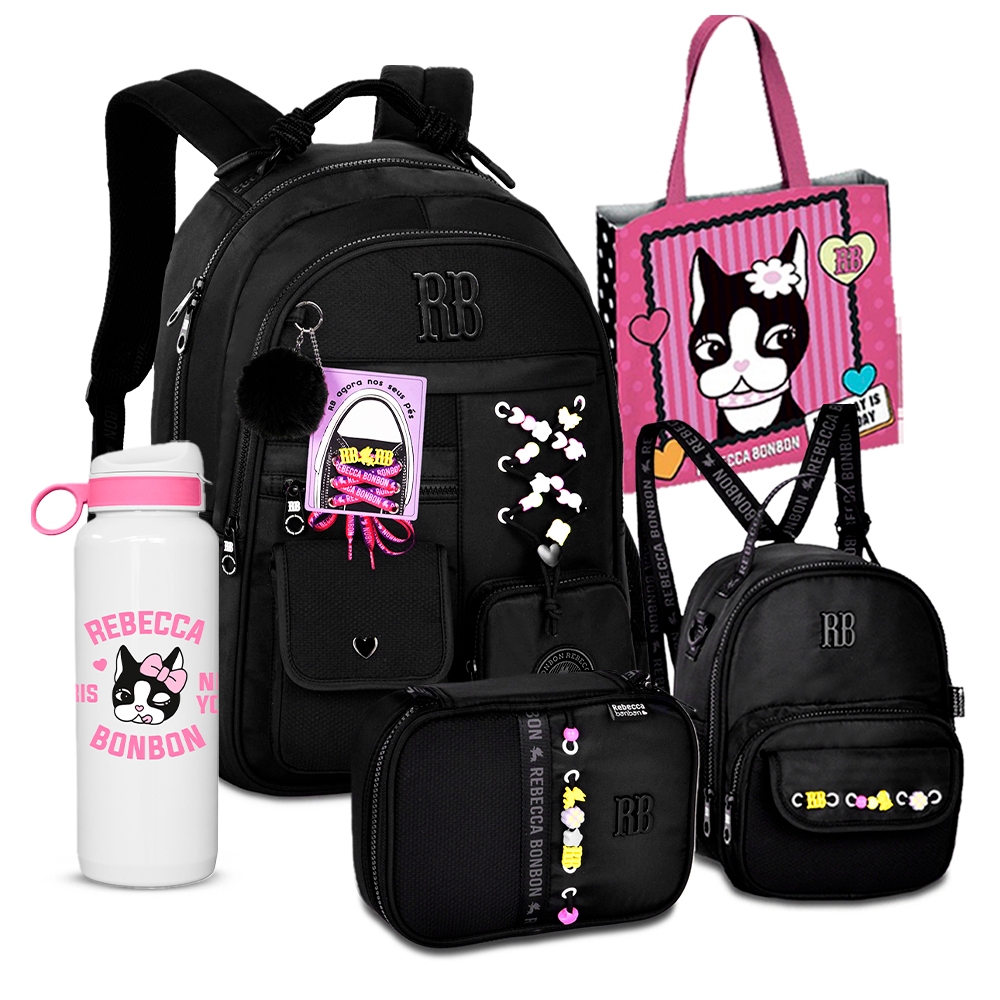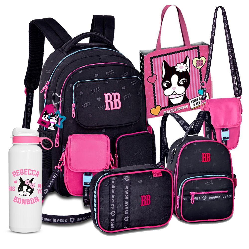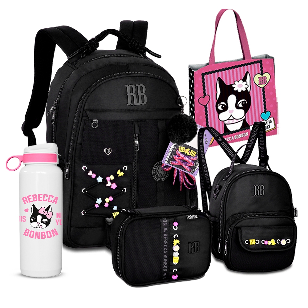 Kit Mochila Estojo Lancheira Metalizada Squeeze Oficial Rb Lancamento Meninas Juvenil