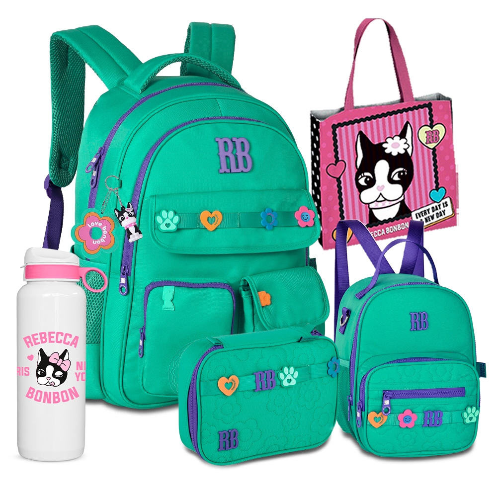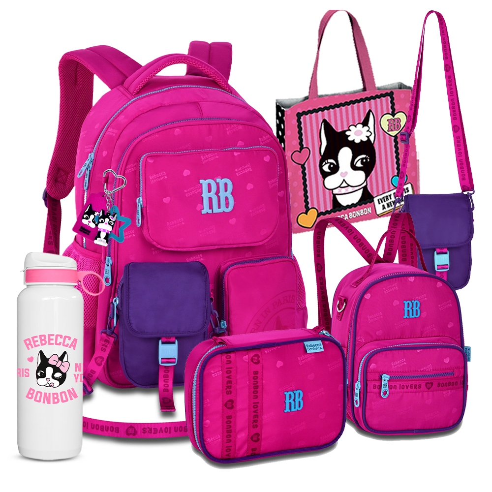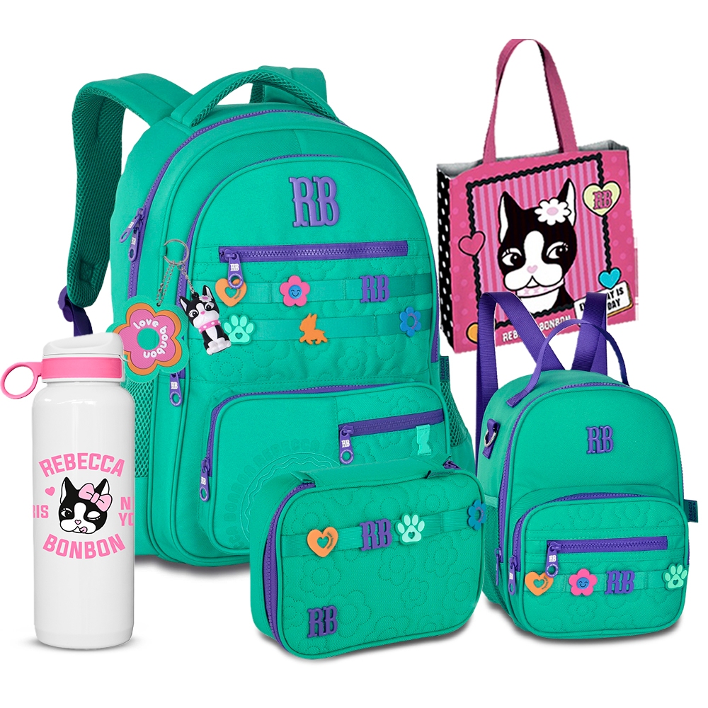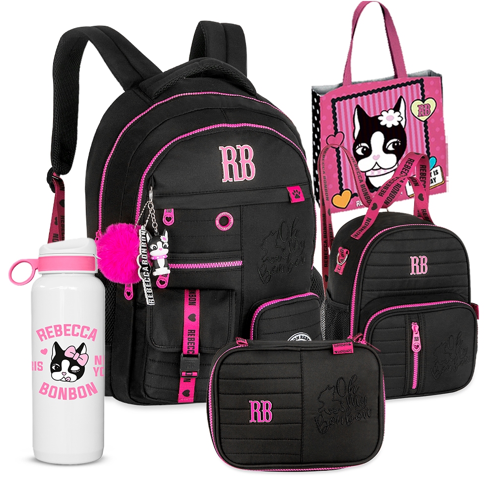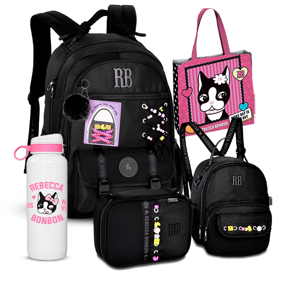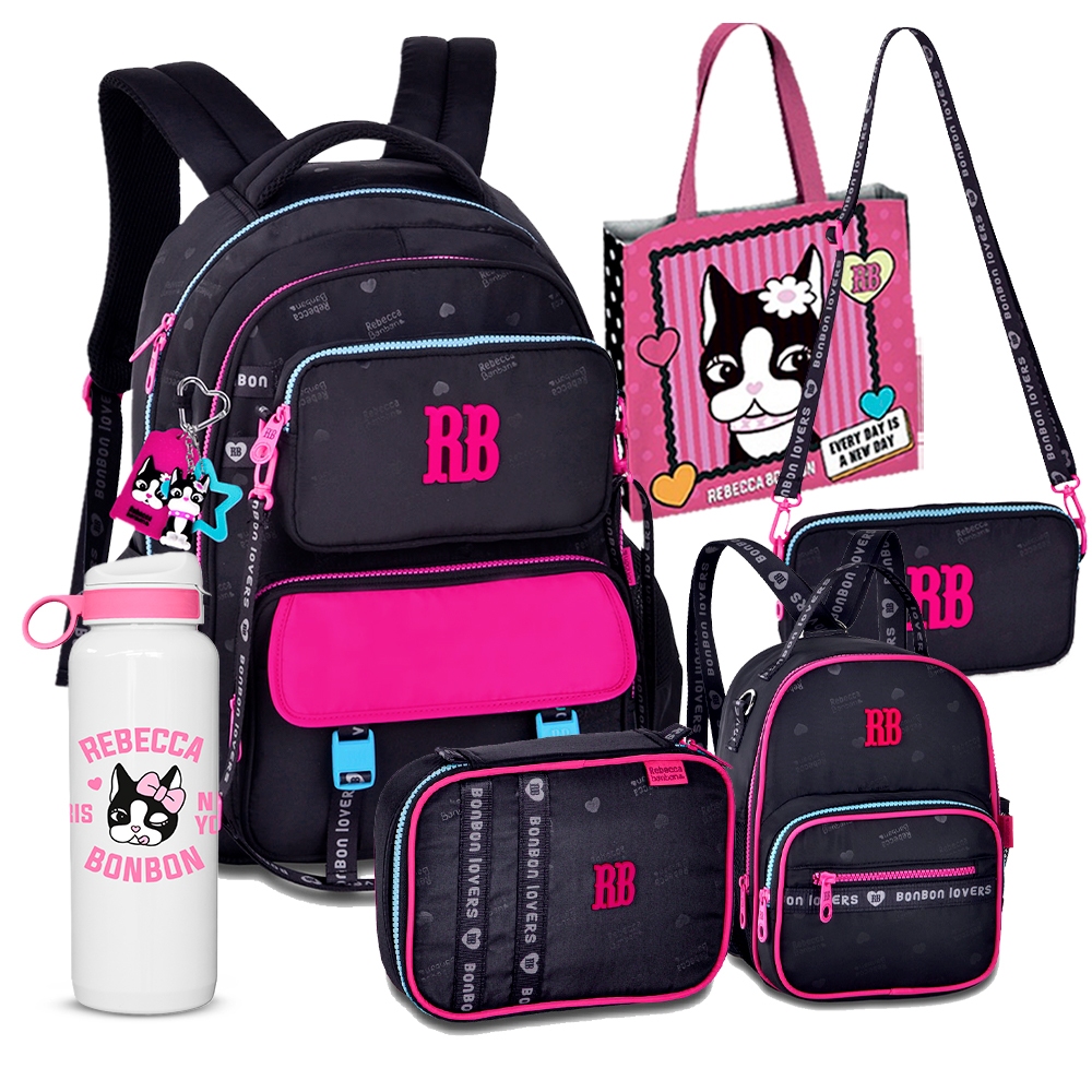 Kit Mochila Estojo Lancheira Metalizada Squeeze Oficial Rb Lancamento Meninas Juvenil