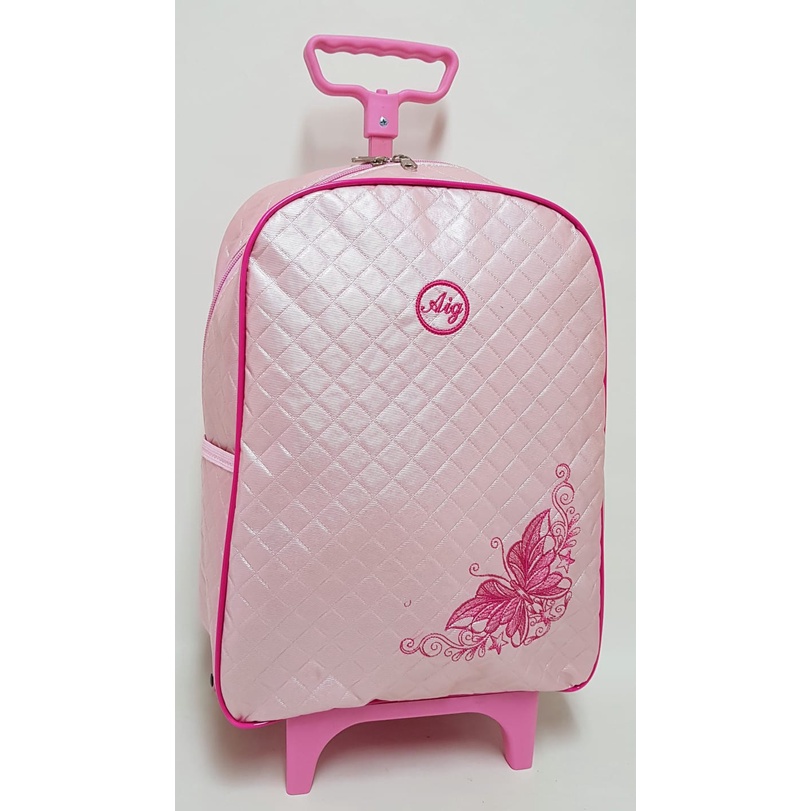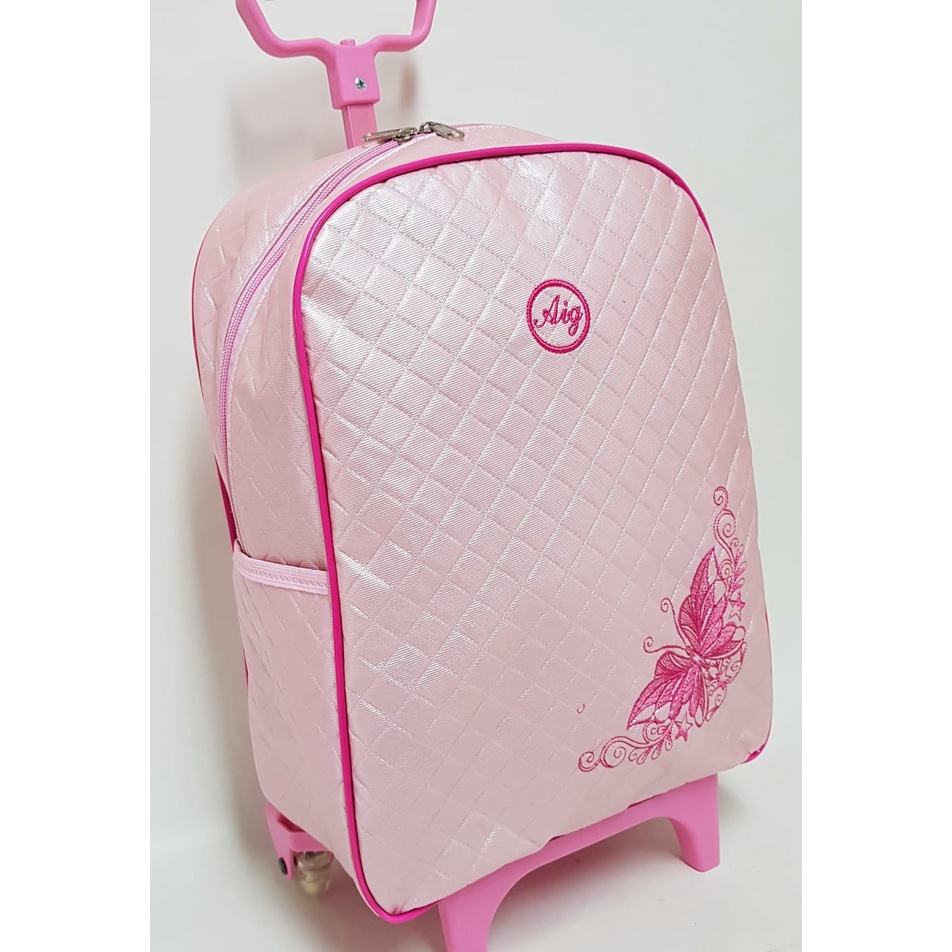 Kit Mochila Feminina De Rodinhas Infantil + Lancheira Escolar C/ Alça Matelasse Rosa Menina