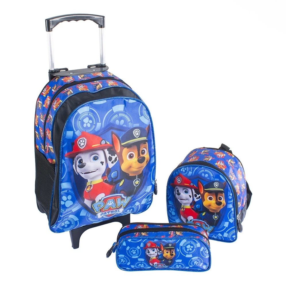 Kit Mochila Patrulha Canina com Rodinhas Lancheira Estojo