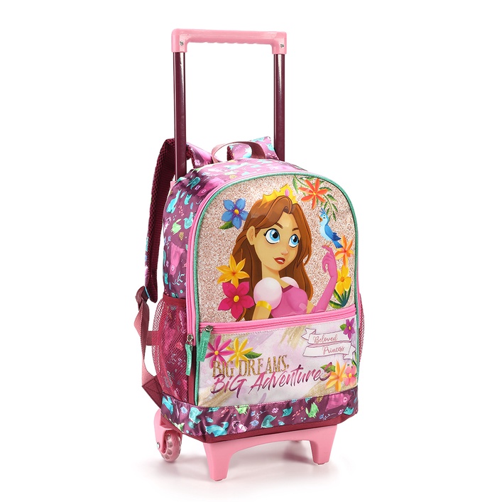 Kit Mochila Infantil com rodas Feminina Lancheira Estojo Escolar Beloved