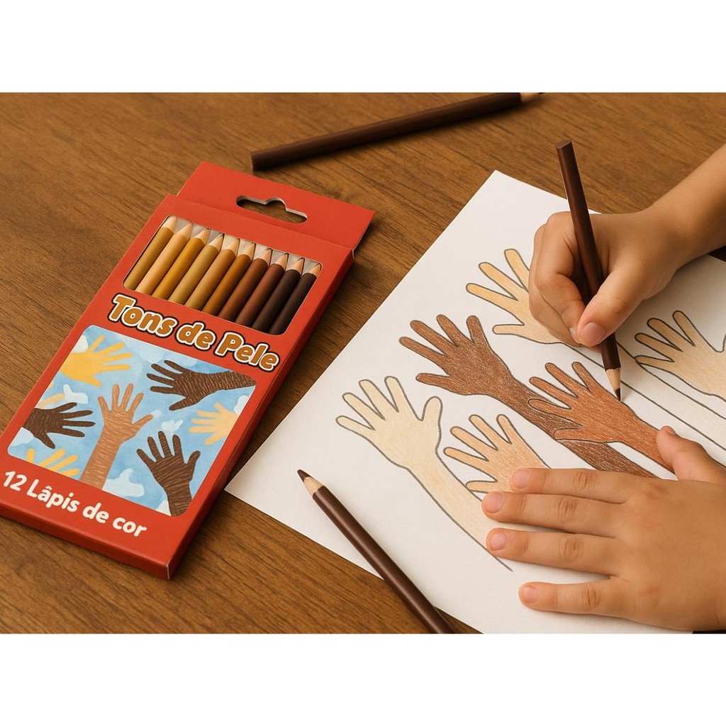 Kit Mochila Juvenil Basic Verde + Lápis de Cor Tons de Pele 12 Cores