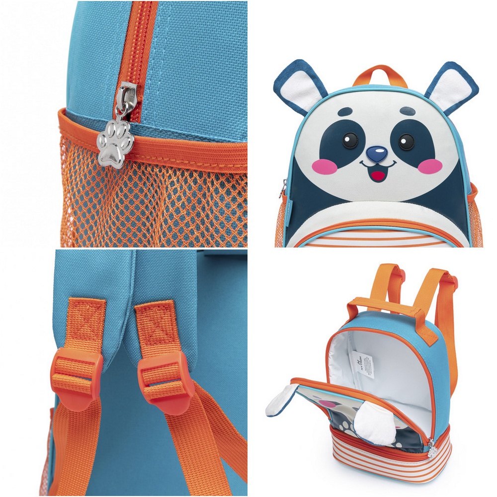 Kit Mochila + Lancheira Compartimento Duplo Pré-Escola Panda Creche Alças Costas Mao Resistente Bolsos Laterais Infantil