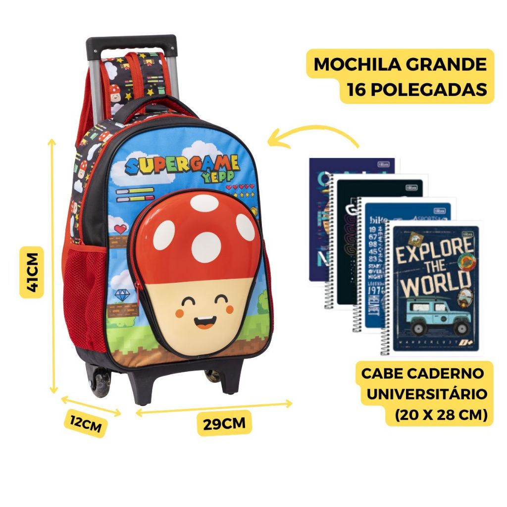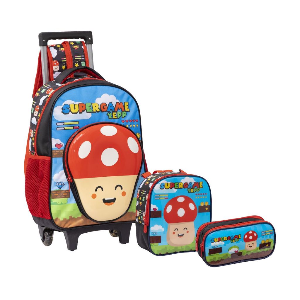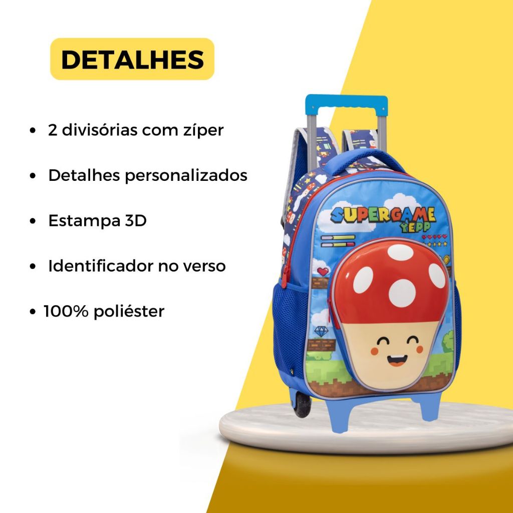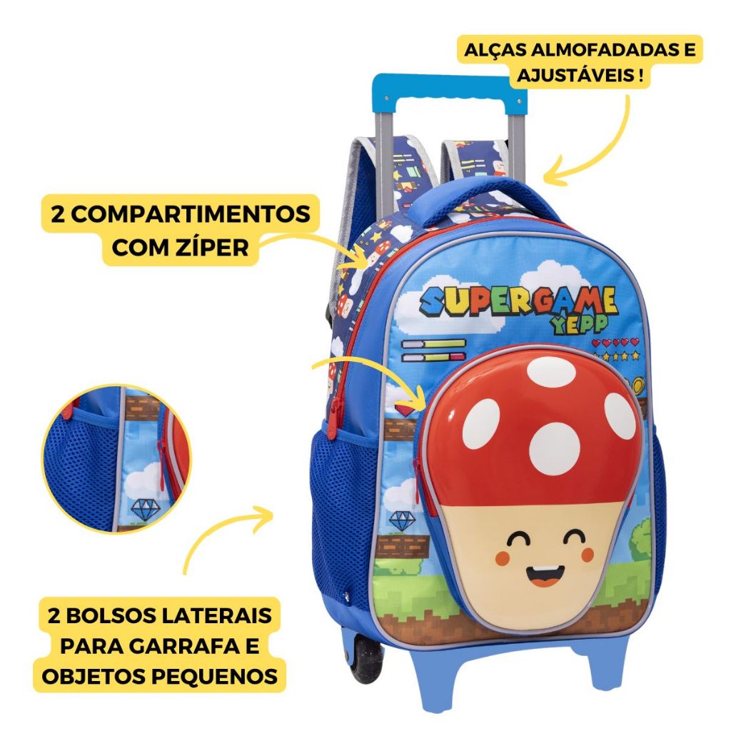 Kit Mochila Rodinha Escolar Super Game Inafantil Meninos