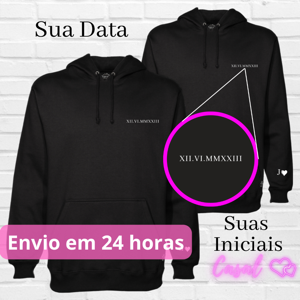 Kit Moletom Casal Data e Letra Personalizada Namorados