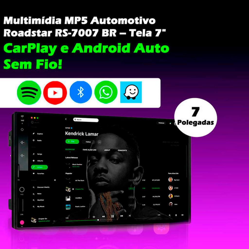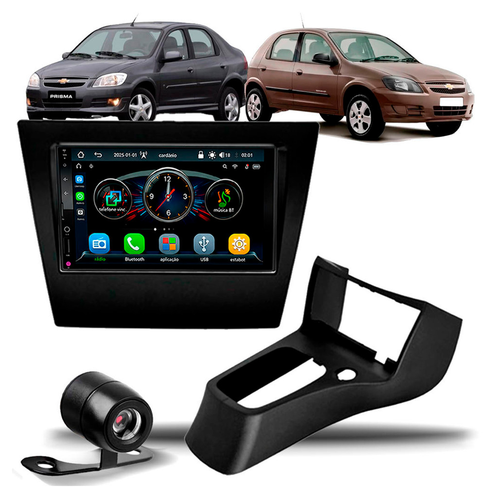 Kit Multimidia MP5 7" Roadstar Tela 7" com CarPlay e Android Auto + Moldura 2din Celta G2 2006 a 2015 + Camera de Re
