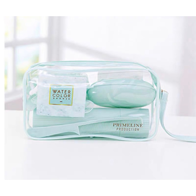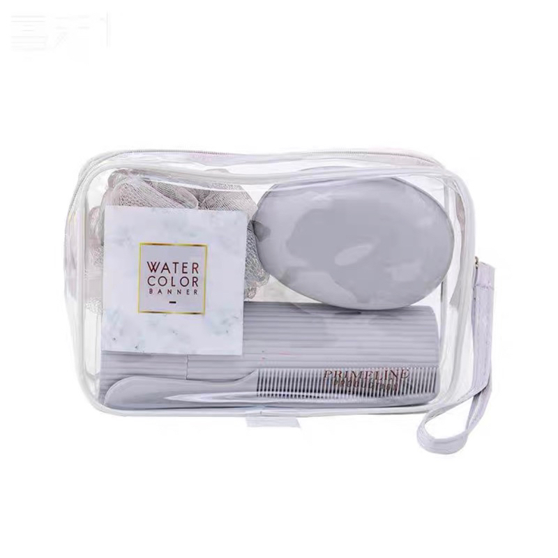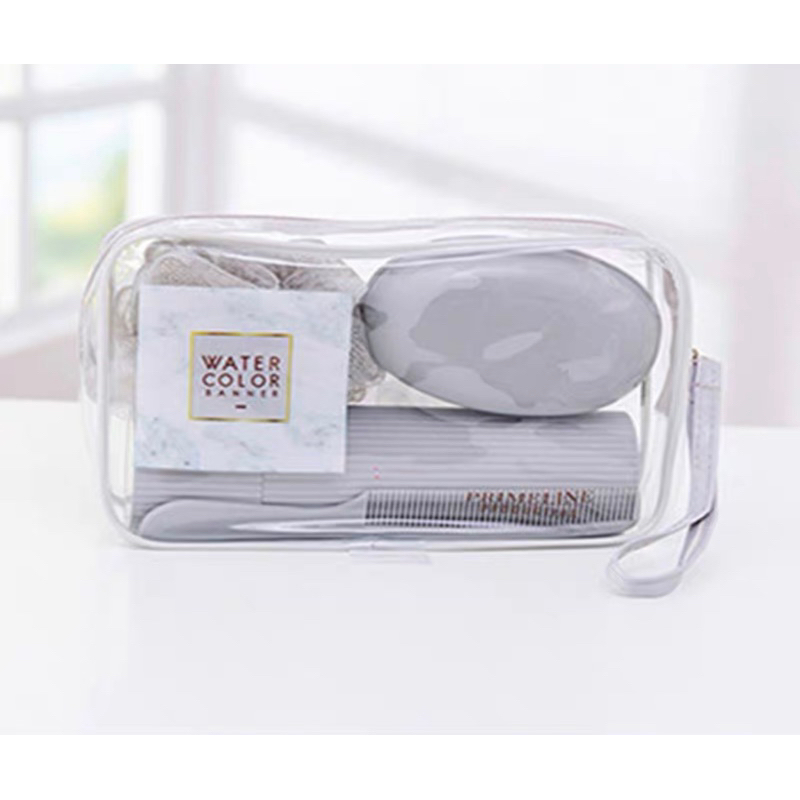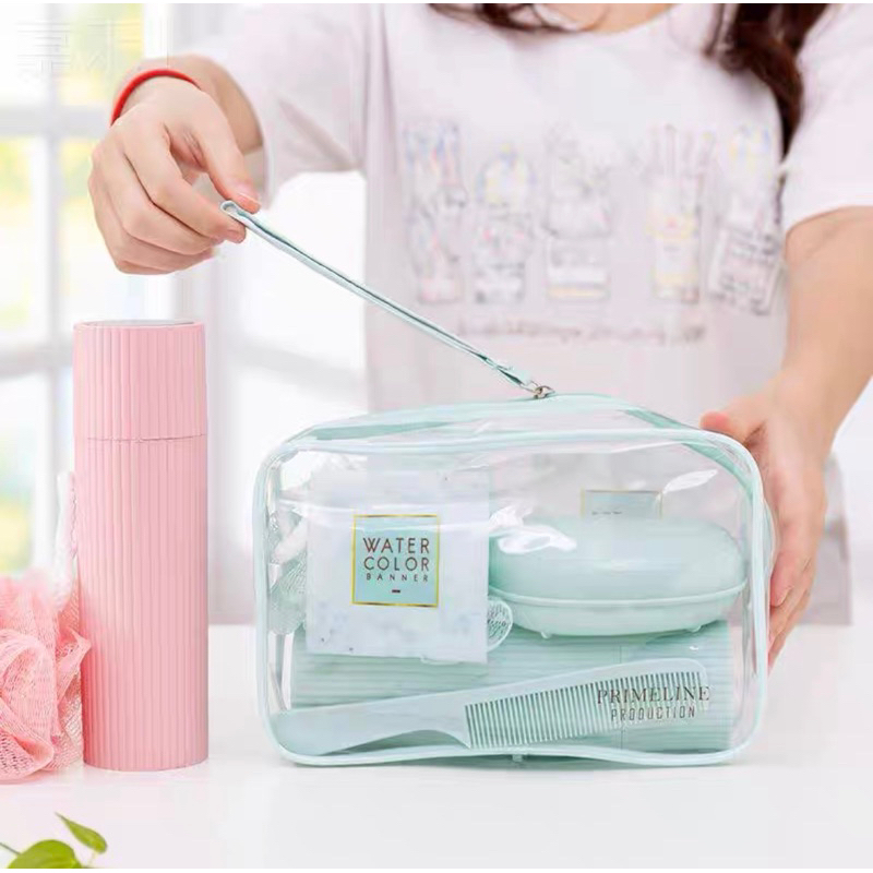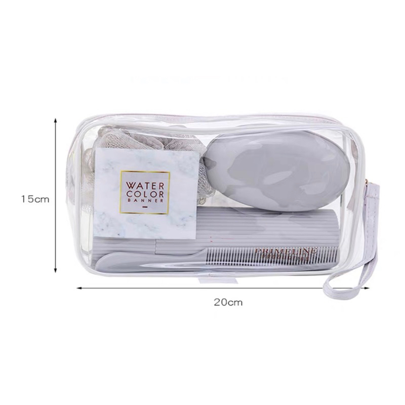 Kit Necessarie Organizadora Bolsa de Viagem com 5 Peças Porta Escova Pente Saboneteira Ducha Bolsa Portátil Transparente