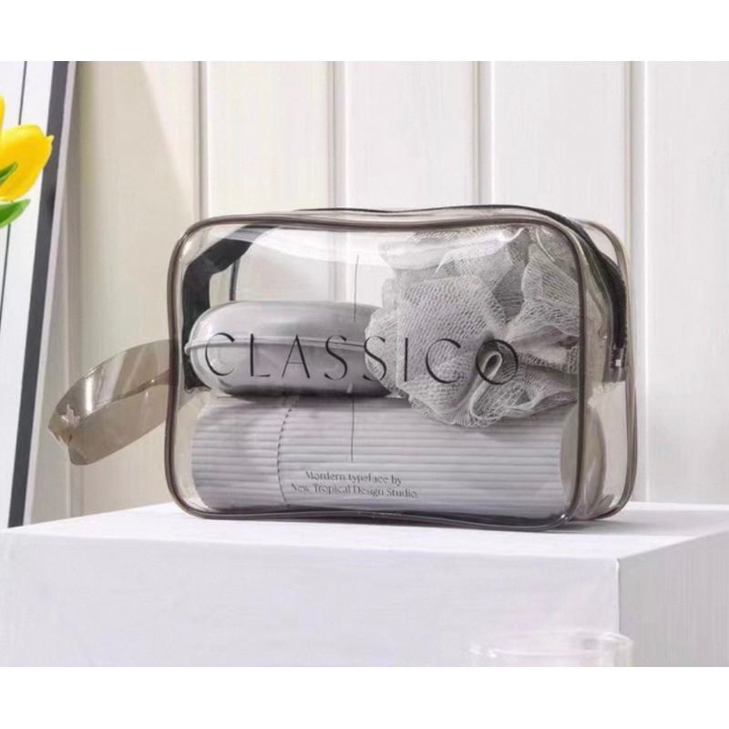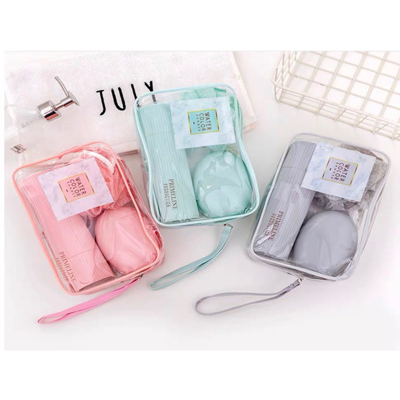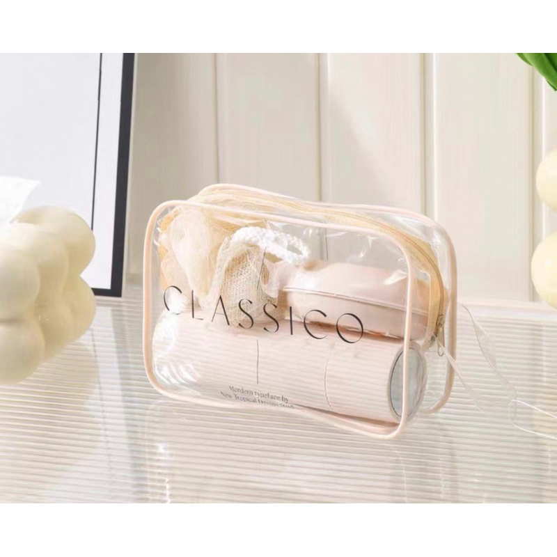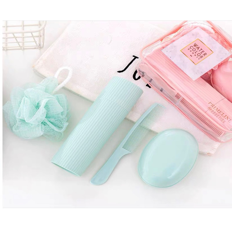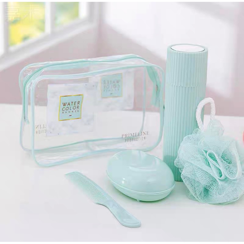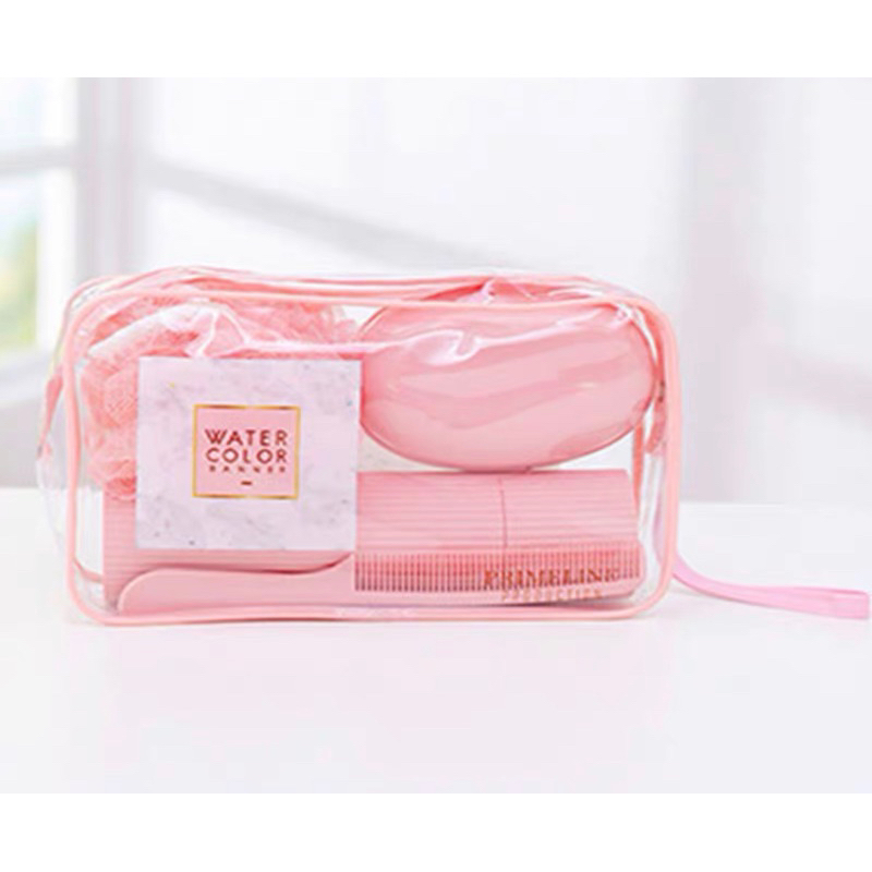 Kit Necessarie Organizadora Bolsa de Viagem com 5 Peças Porta Escova Pente Saboneteira Ducha Bolsa Portátil Transparente