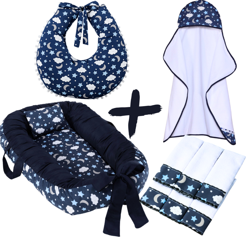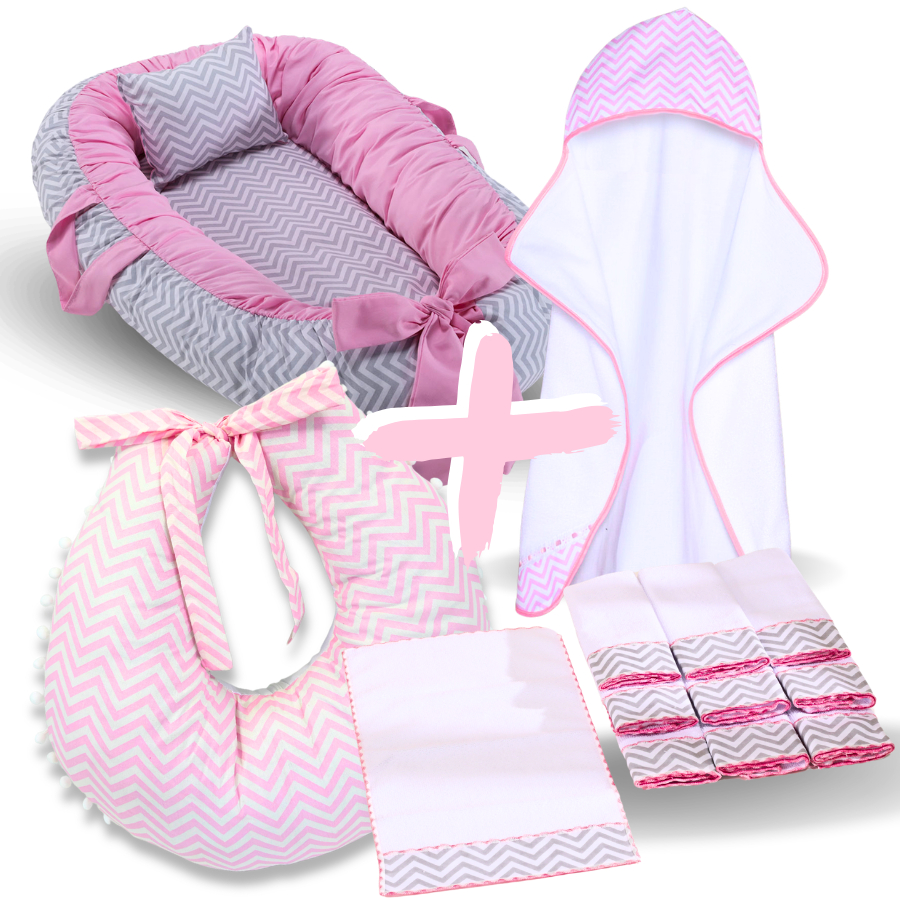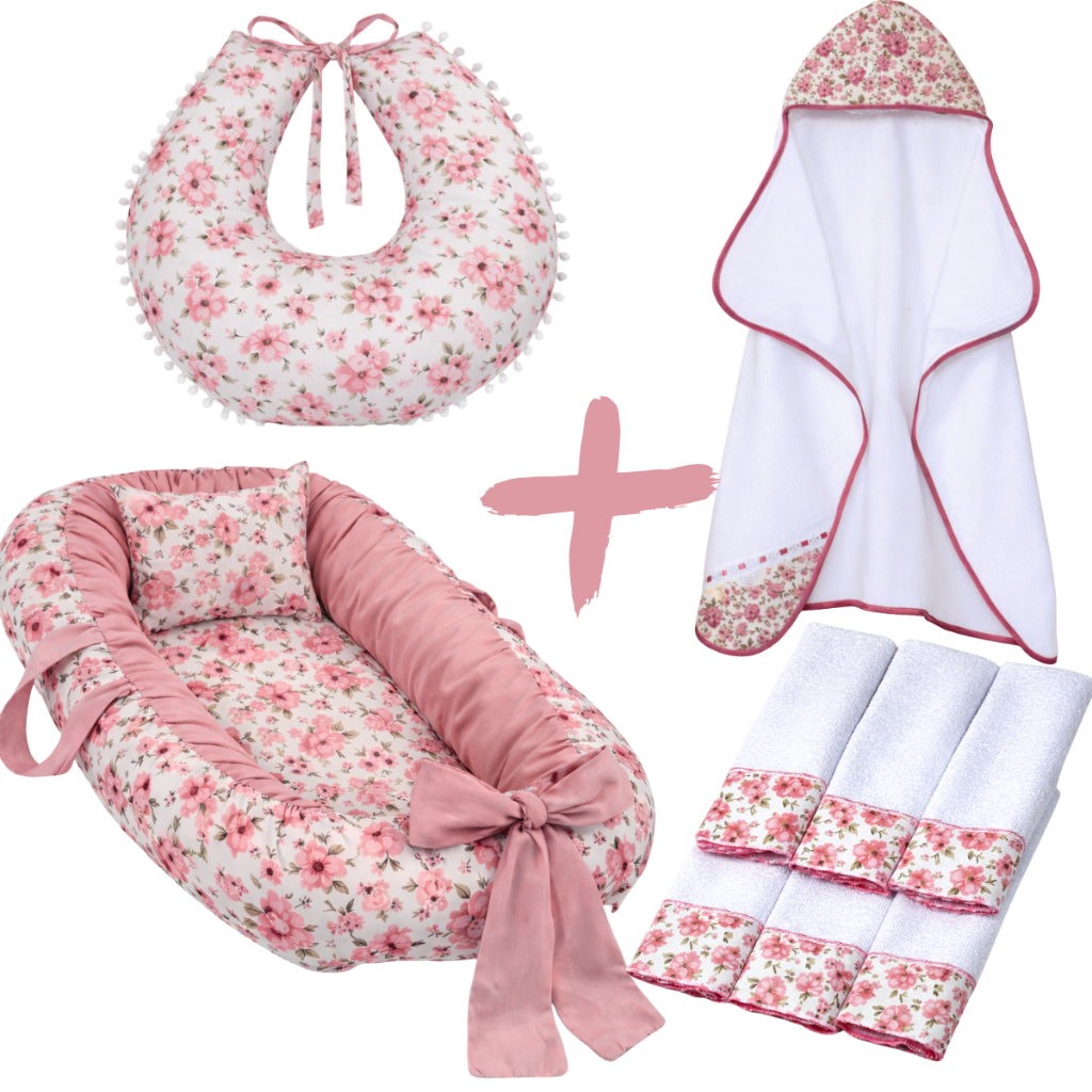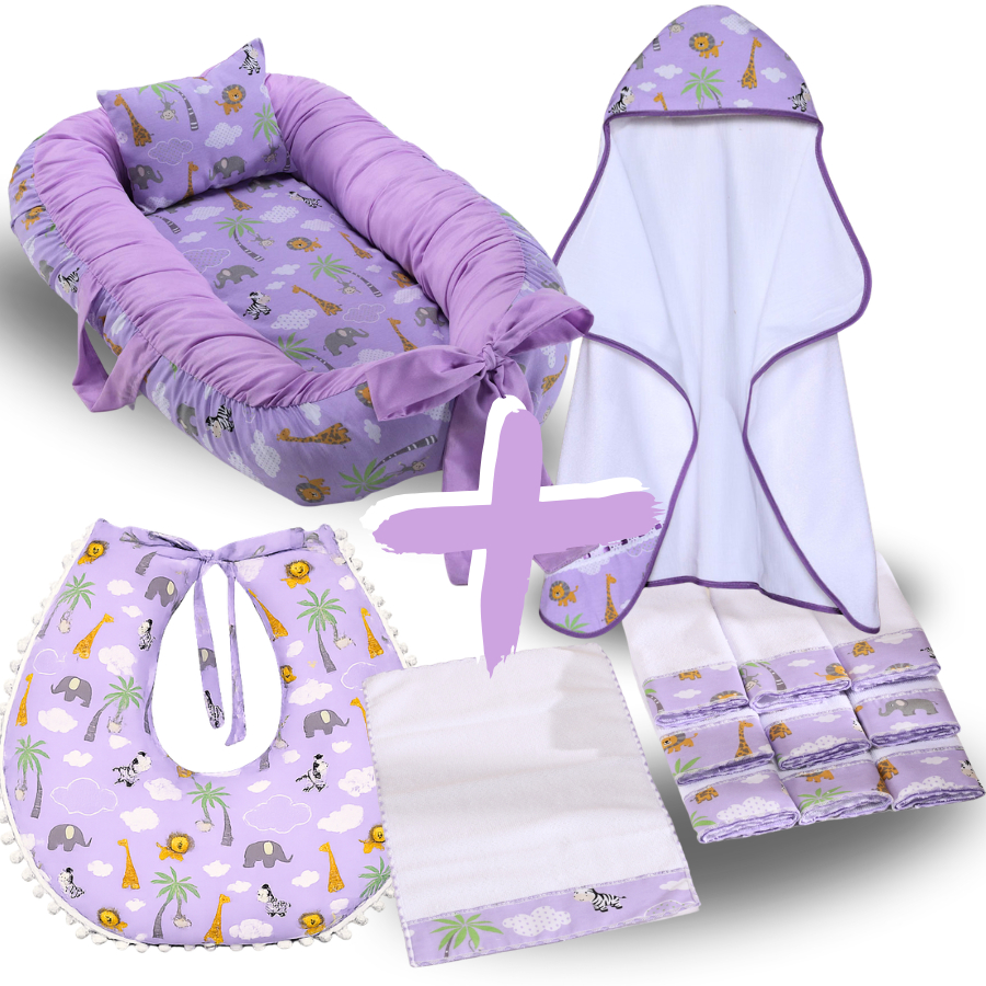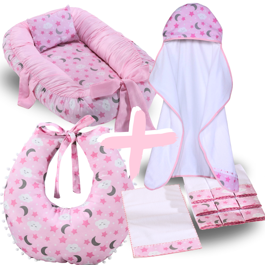 Kit Ninho Redutor de Berço Bebe + Toalha de Banho Forrada + 6 Toalha de Ombro + Almofada Amamentação