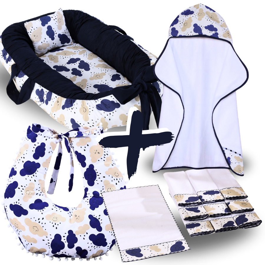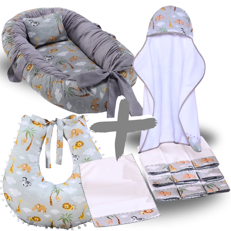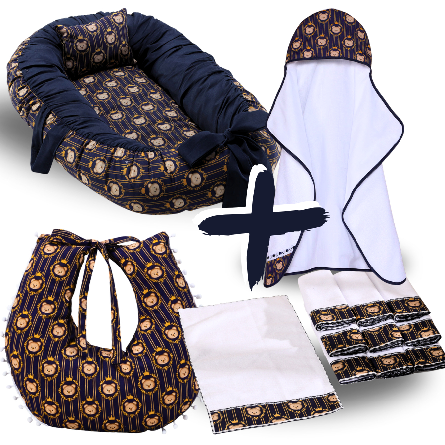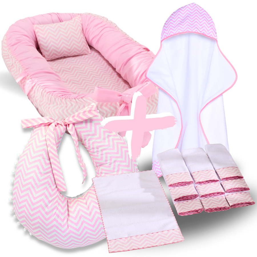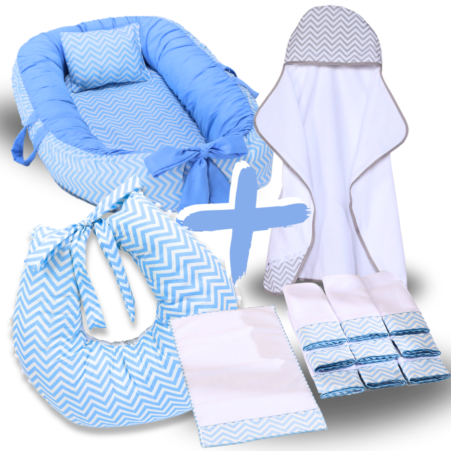 Kit Ninho Redutor de Berço Bebe + Toalha de Banho Forrada + 6 Toalha de Ombro + Almofada Amamentação