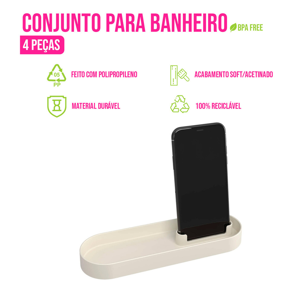 Kit Organização Lixeira 4 Pçs De Lavabo Banheiro Serene Coza