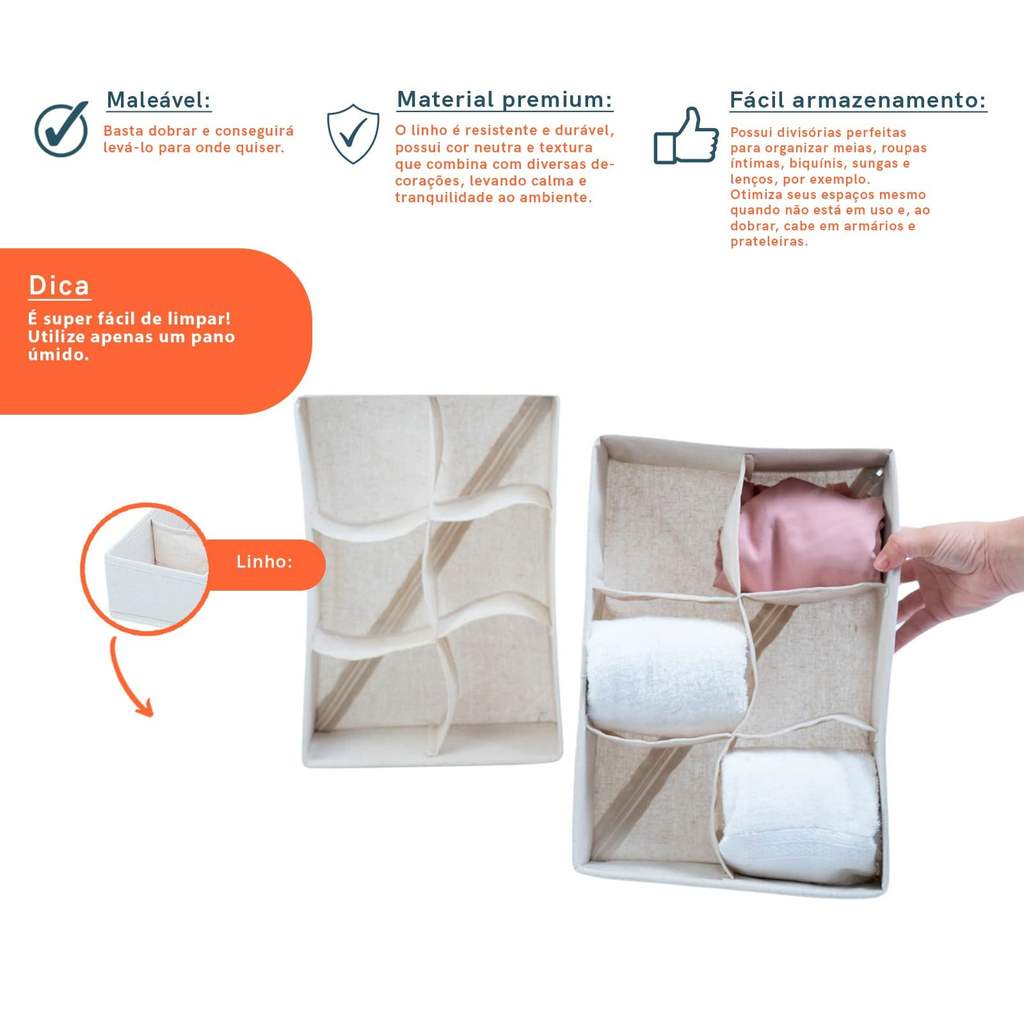 Kit Organizador Dobrável Divisórias Linho Offwhite C/2 - Oikos