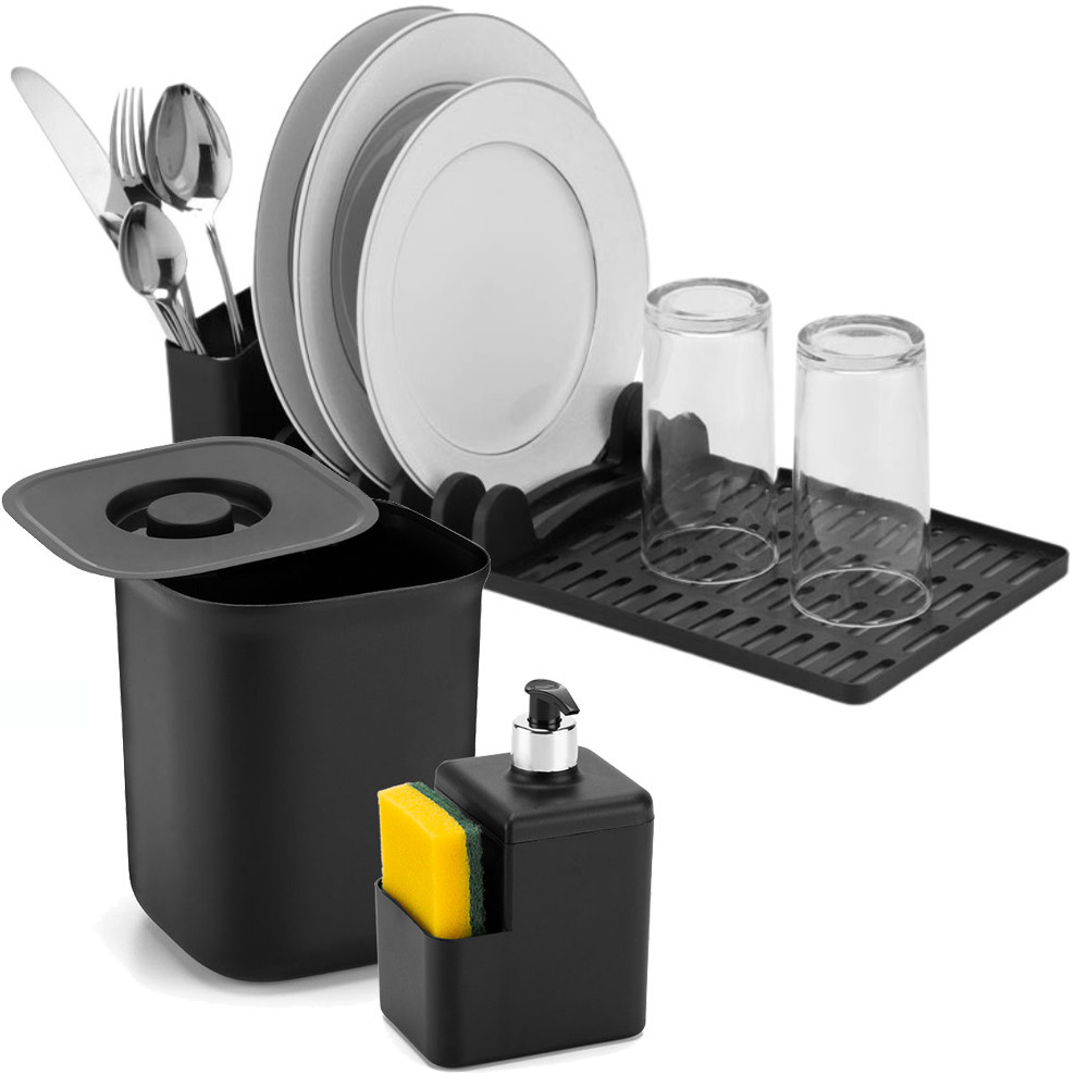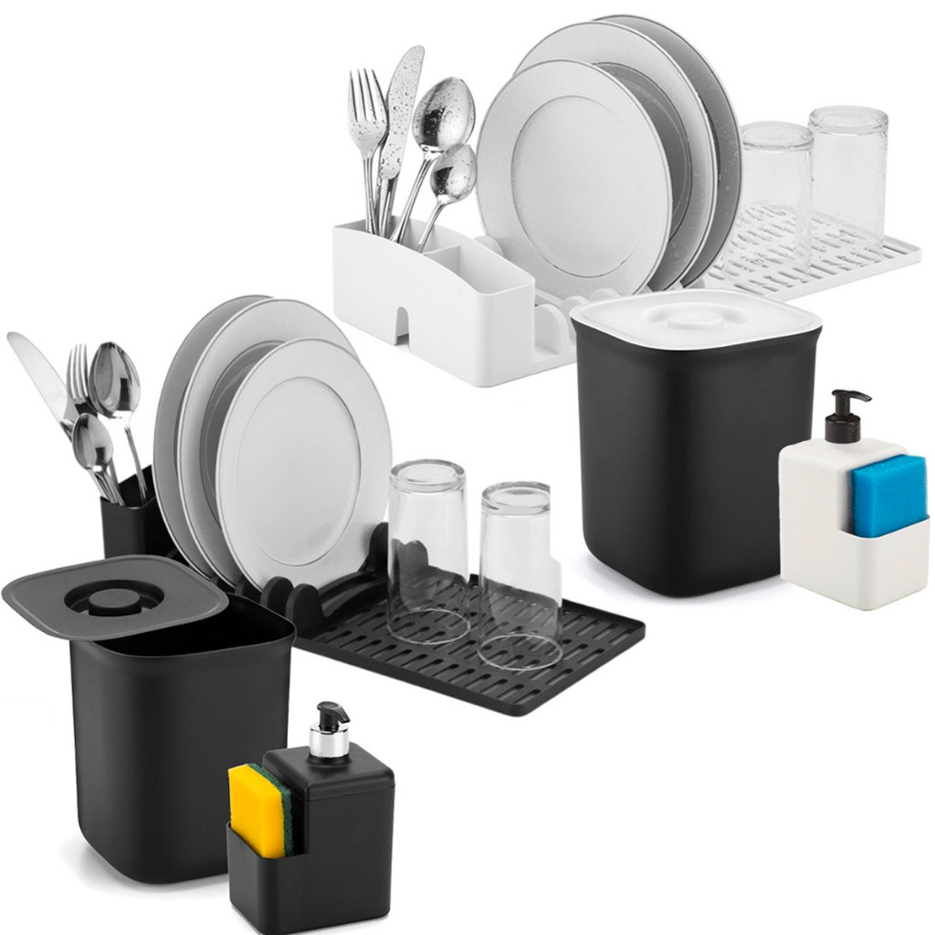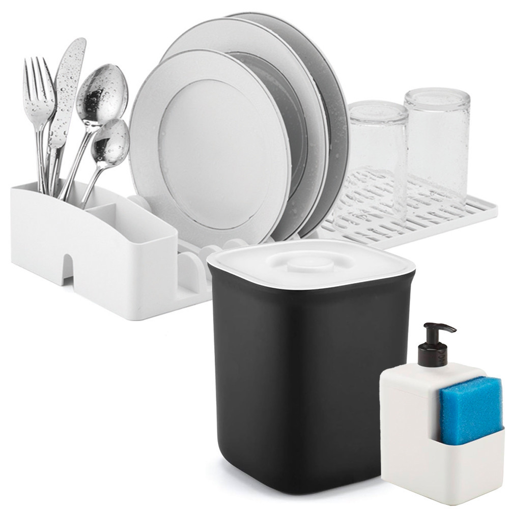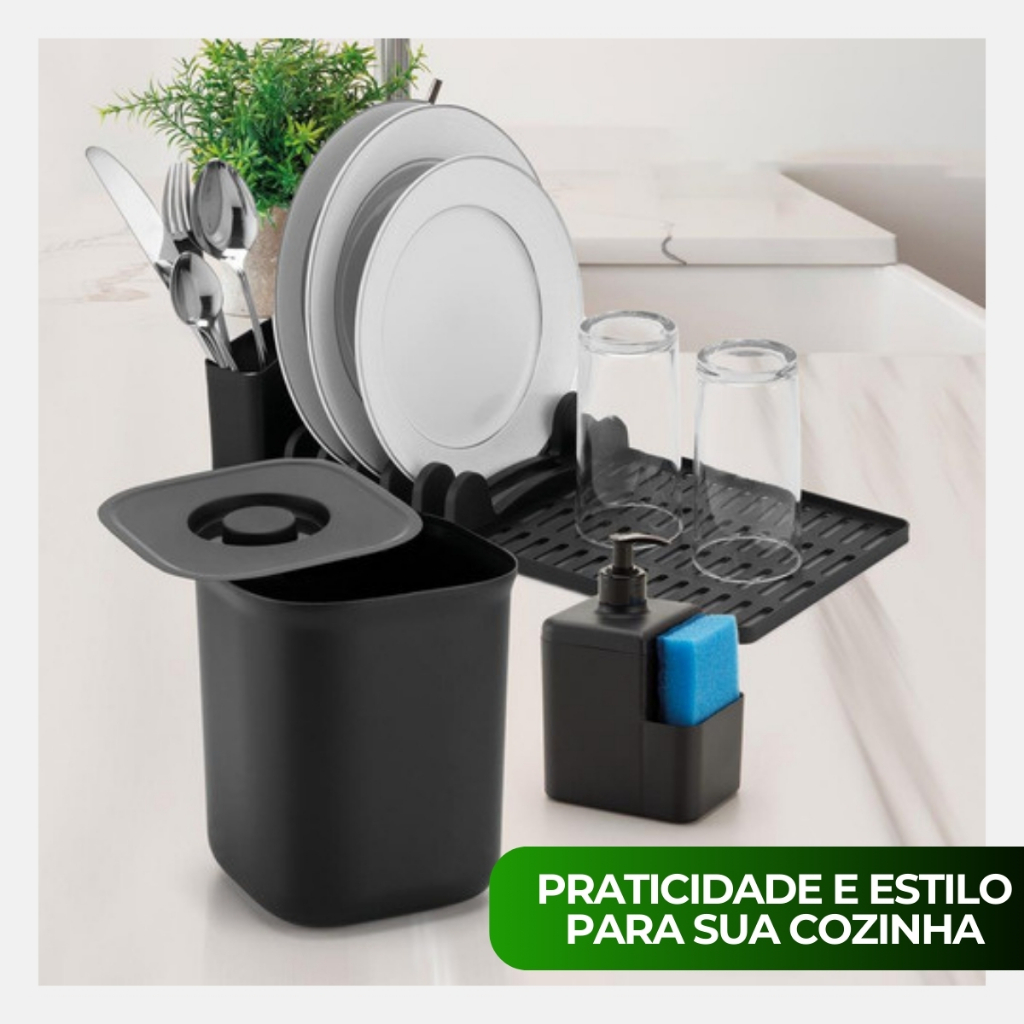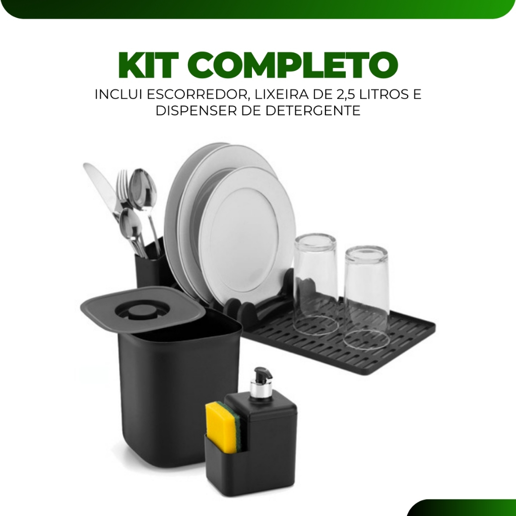 Kit Organizador Escorredor Dispenser Detergente Lixeira 2,5l Acessorios Pia Cozinha Apartamento