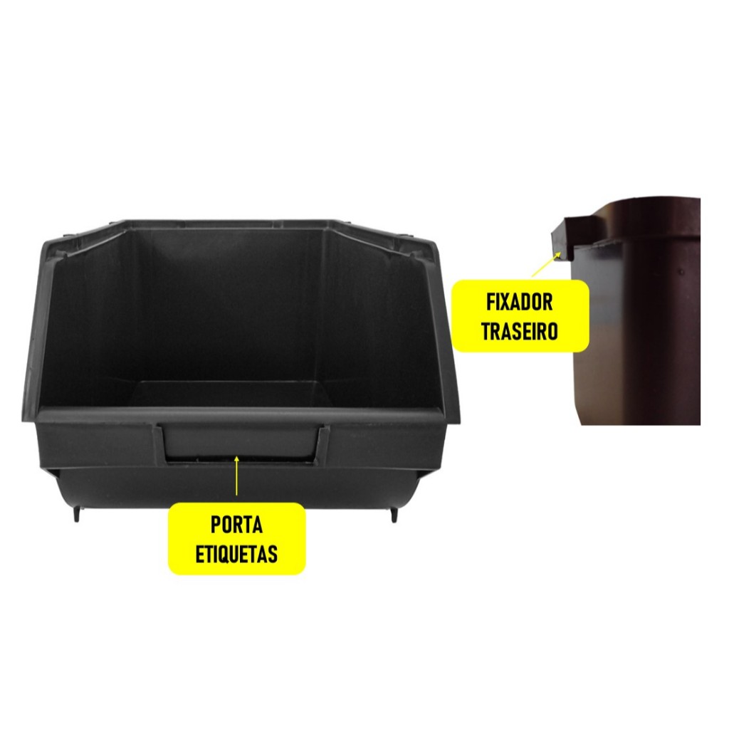 Kit Organizador Nº 5 6 Peças Bin Gaveteiro Caixa Parafusos Prateleira Preto