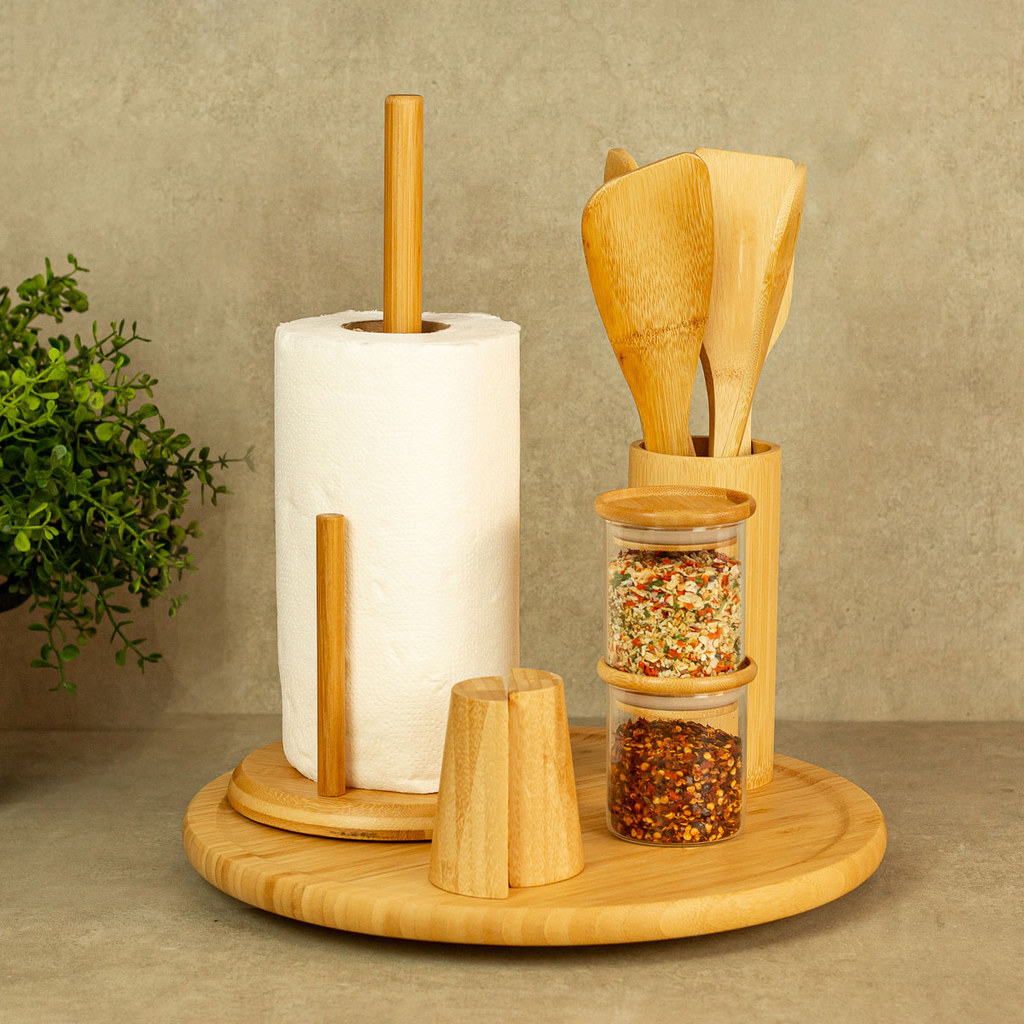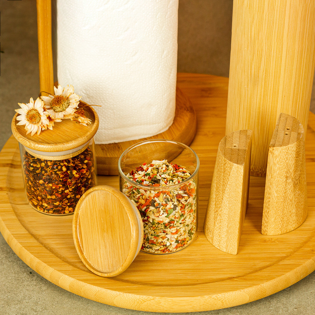 Kit Organizador de Bancada com Utensílios de Bambu E Potes Oikos