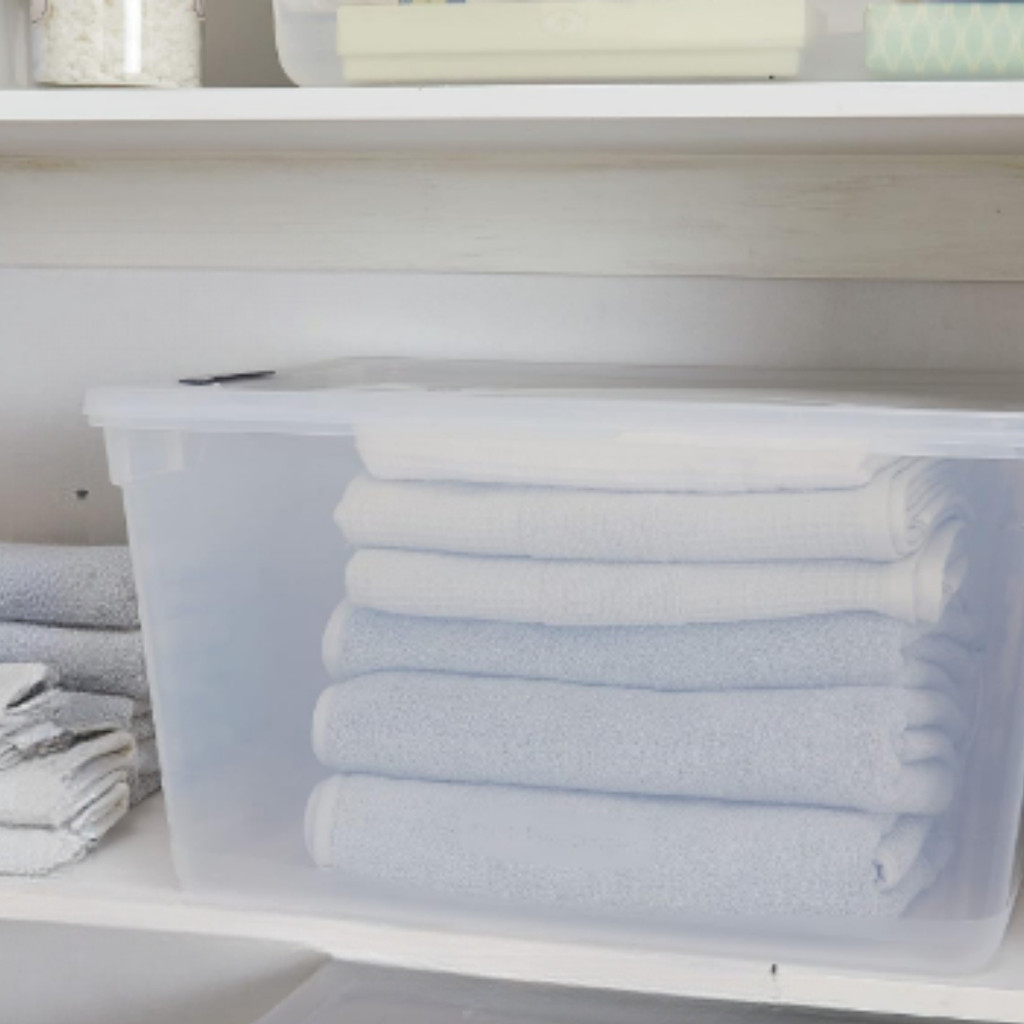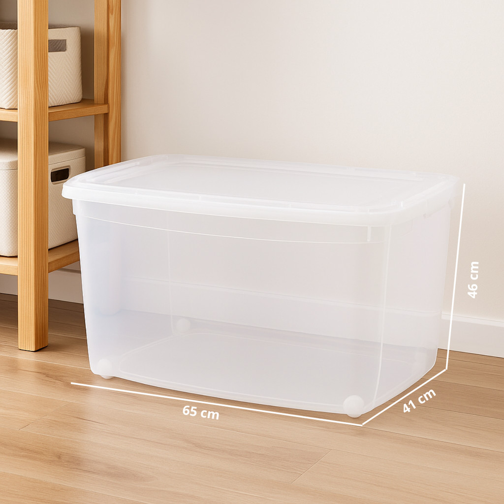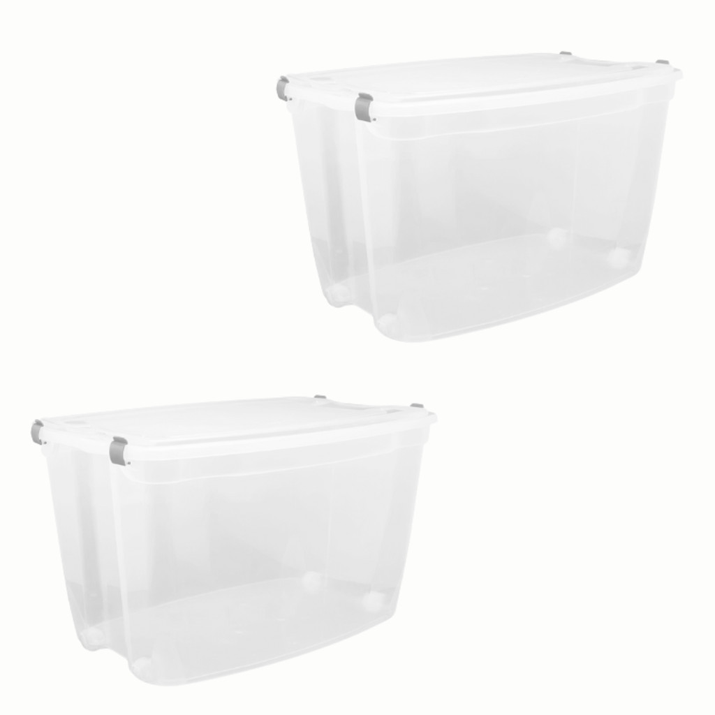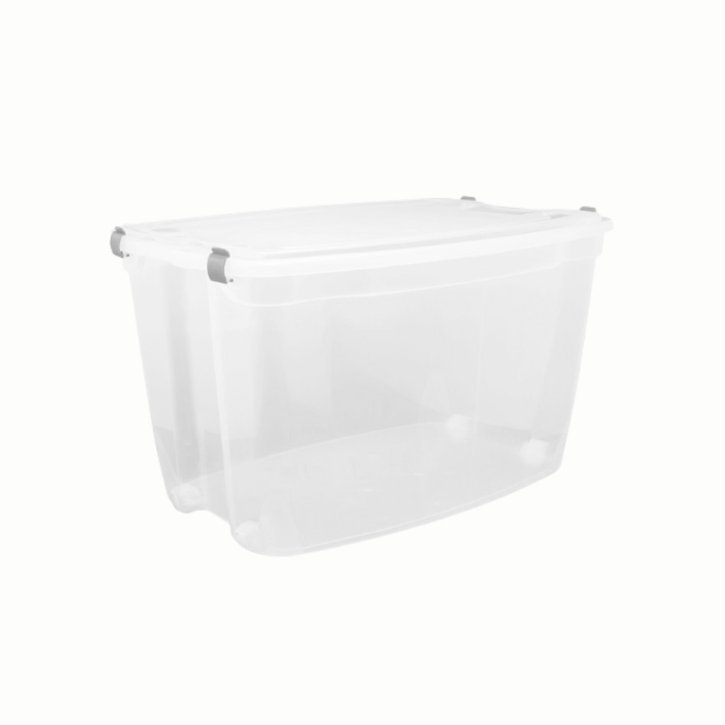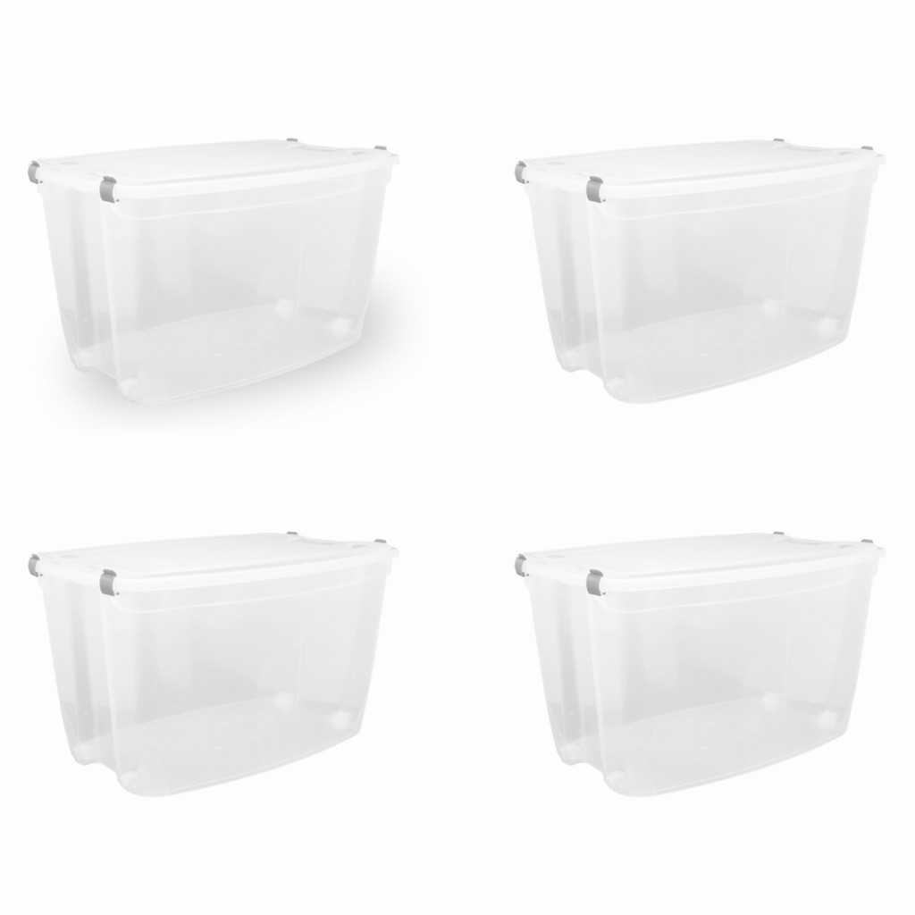 Caixa Organizadora Alta 78L com Rodízio Jaguar Transparente Com Tampas e Travas Resistentes