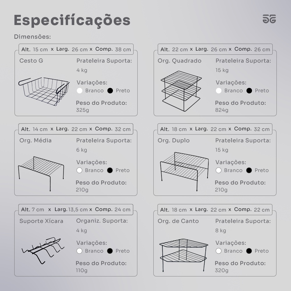Kit Organizador Prateleiras Armário Cozinha 6 peças Aramado Suporte Pratos Xícaras Aço Reforçado
